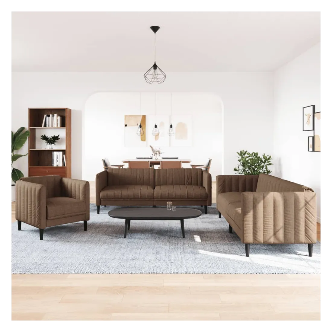 Cet ensemble de canapés est un excellent endroit pour discuter, lire, regarder la télévision ou simplement vous détendre. Il est destiné à être un point central de votre maison. Tissu durable : le tissu présente un aspect simple et épuré, et il est respirant et durable. Expérience de siège confortable : la chaise de canapé est très confortable grâce à l'assise, aux accoudoirs et au dossier très rembourrés. Pieds de soutien : le canapé rembourré est soutenu par des pieds robustes, qui assurent sa stabilité, sa sécurité et sa fermeté. Design accrocheur : doté d'un design simple mais moderne, ce siège de salon est destiné à attirer l'attention dans votre pièce.