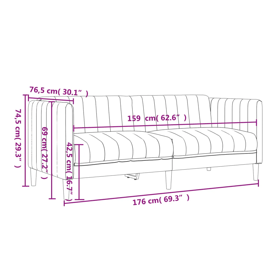 - Dimensions totales : 176 x 76,5 x 74,5 cm (l x P x H)