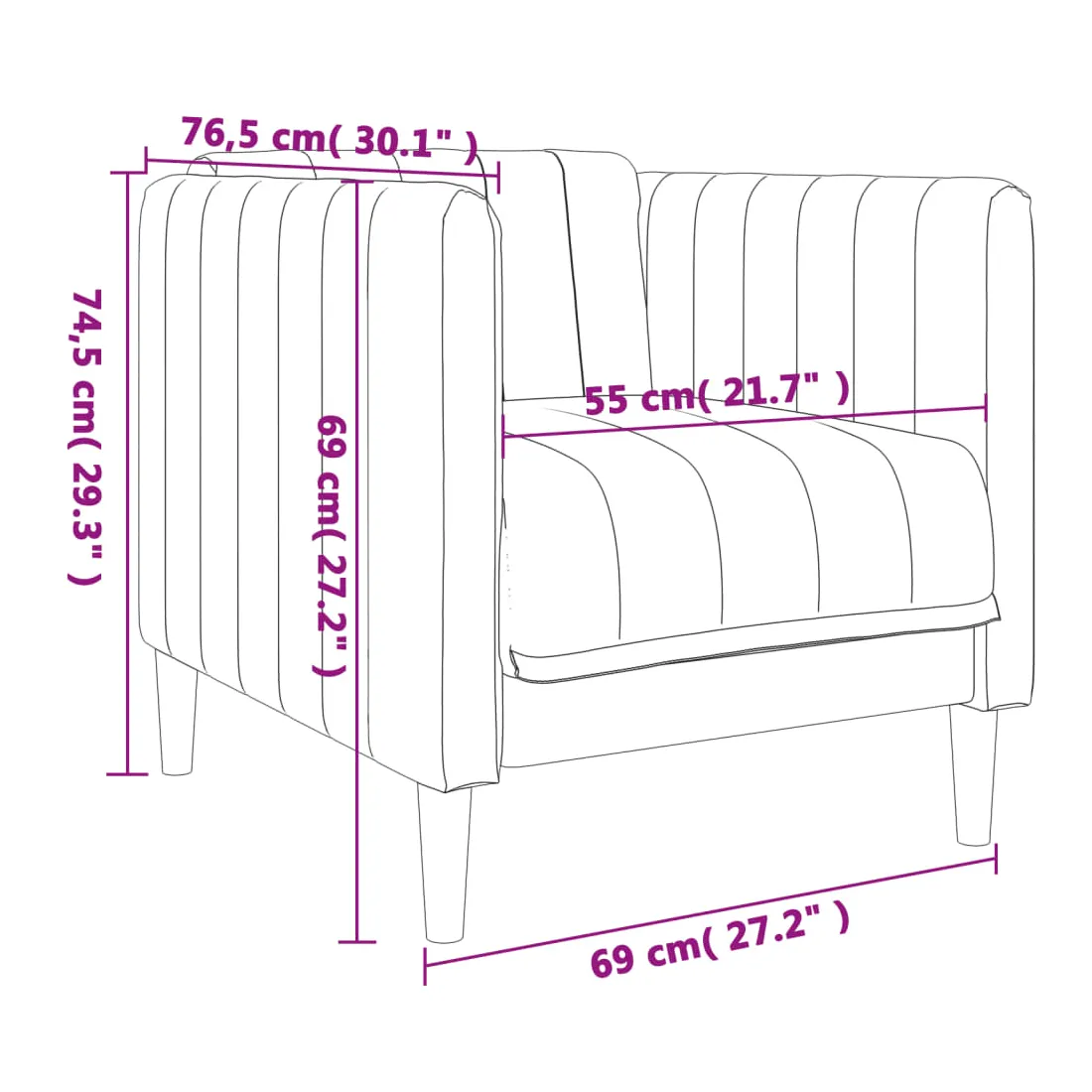 - Dimensions totales : 69 x 76,5 x 74,5 cm (l x P x H)
