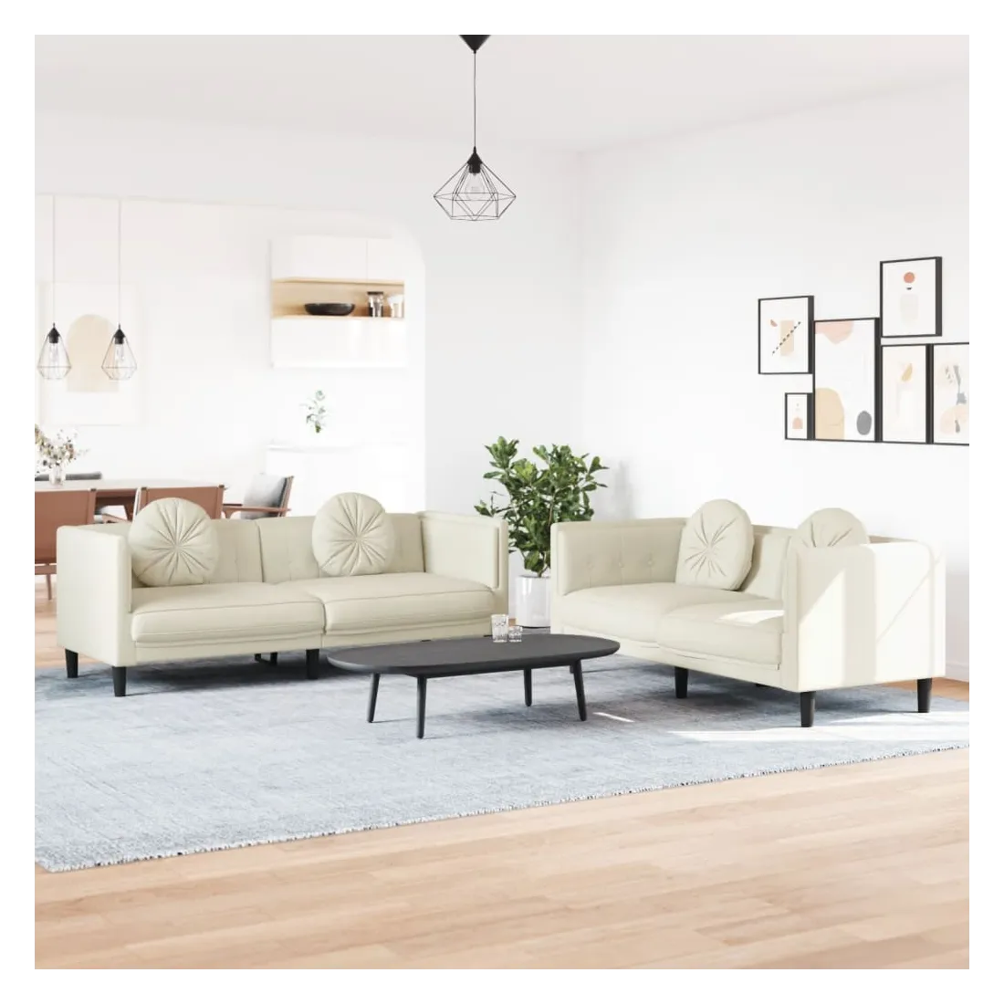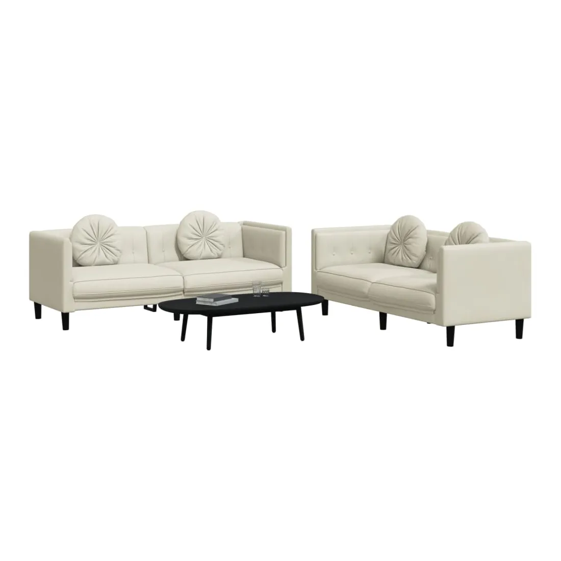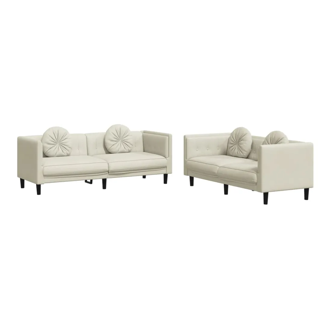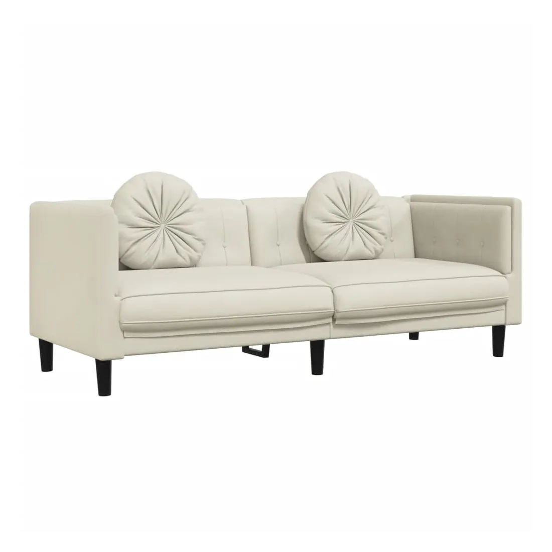 Cet ensemble de canapés est un excellent endroit pour discuter, lire, regarder la télévision ou simplement vous détendre. Il est destiné à être un point central de votre maison. Velours doux : le velours est un tissu doux et confortable, agréable au toucher.Expérience d'assise confortable : le canapé est très confortable grâce au siège et aux accoudoirs épais et rembourrés.Oreillers ronds pratiques : ces oreillers décoratifs ronds non seulement embellissent votre décor mais ils peuvent également apporter un confort supplémentaire lorsque vous êtes assis ou allongé.Pieds de soutien : le canapé rembourré est soutenu par des pieds robustes, qui assurent sa stabilité, sa sécurité et sa fermeté.Design accrocheur : doté d'un design simple mais moderne, ce siège de salon est destiné à attirer l'attention dans votre pièce.