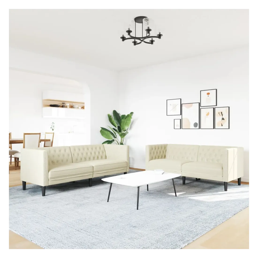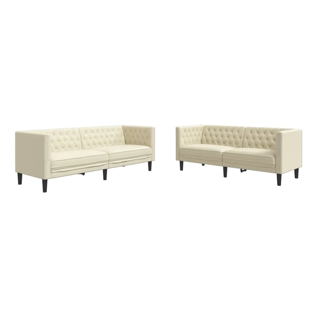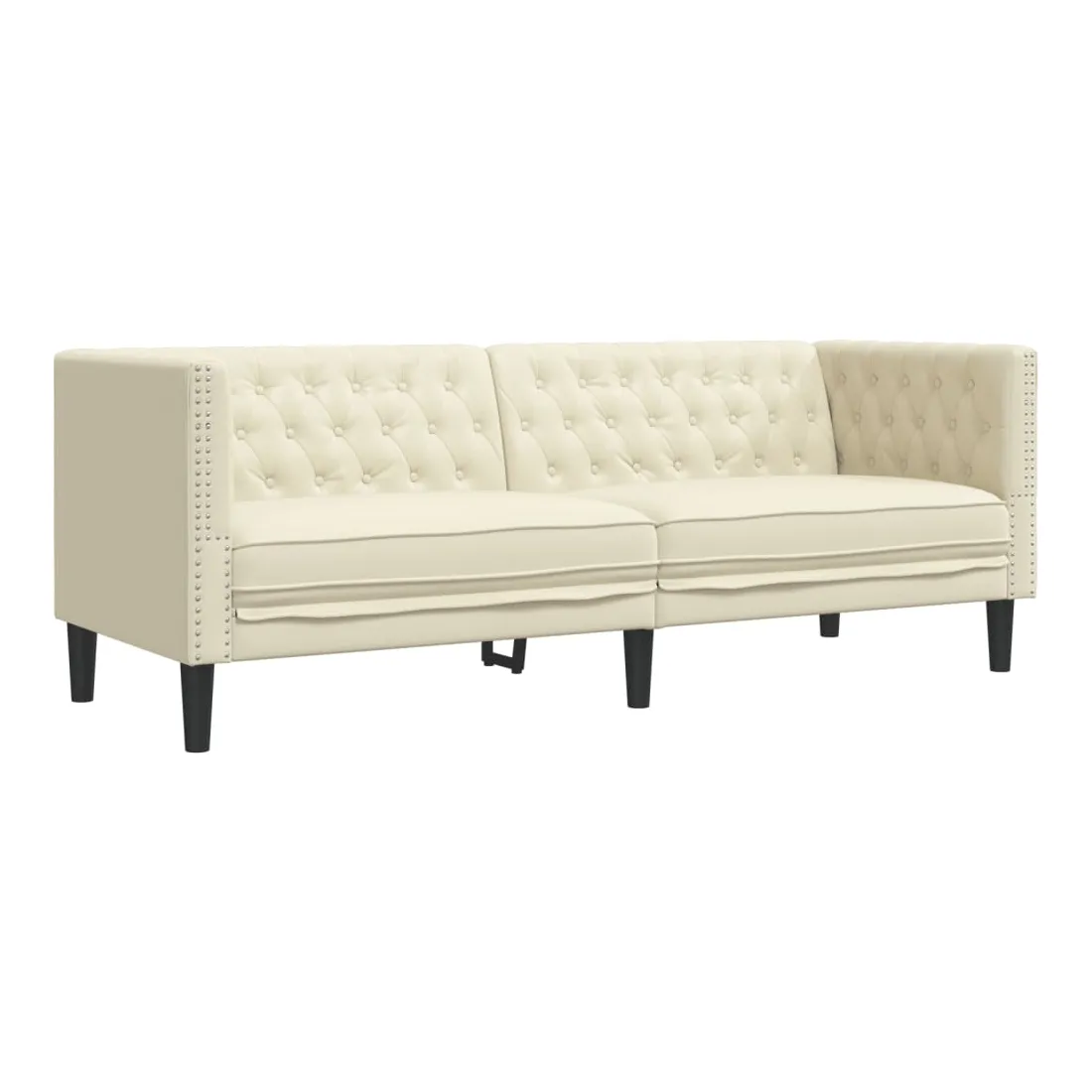 Cet ensemble de canapé Chesterfield est un excellent endroit pour discuter, lire, regarder la télévision ou simplement se détendre. Il est destiné à être un point central dans votre maison. Longue durée de vie et entretien facile : le similicuir est un matériau très durable qui résiste aux taches, ce qui le rend facile à nettoyer avec un chiffon humide. Sa surface lisse lui confère un aspect élégant qui ressemble à celui du cuir véritable.Expérience d'assise confortable : le canapé est très confortable avec les sièges, les accoudoirs et les oreillers de dossier bien rembourrés.Style Chesterfield : avec le dossier et les accoudoirs classiques à boutons tuftés, et une hauteur de dossier et d'accoudoir uniforme, le canapé rehaussera n'importe quelle pièce, offrant à la fois style et confort.Pieds de soutien : le canapé rembourré est soutenu par des pieds robustes, qui assurent sa stabilité, sa sécurité et sa fermeté.