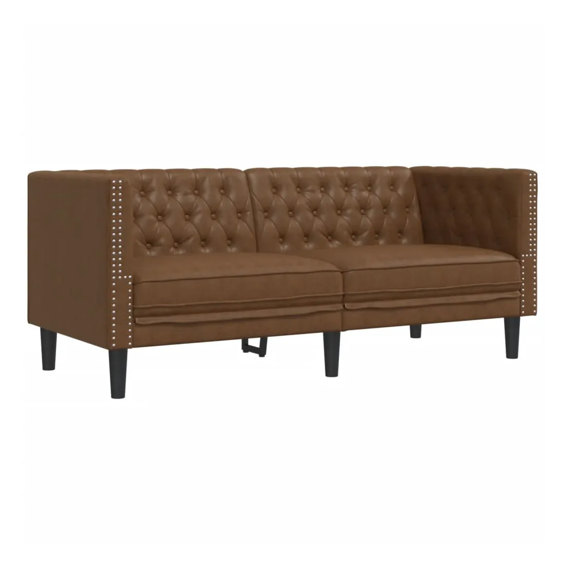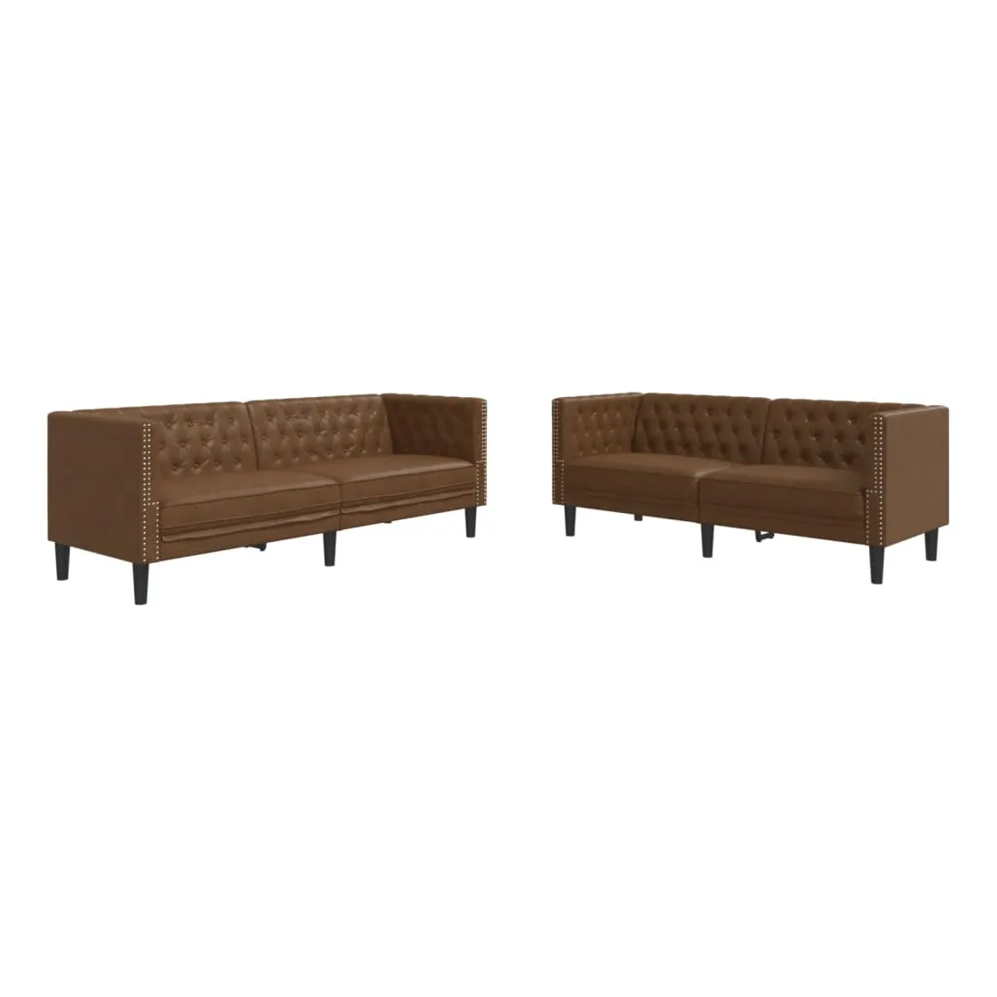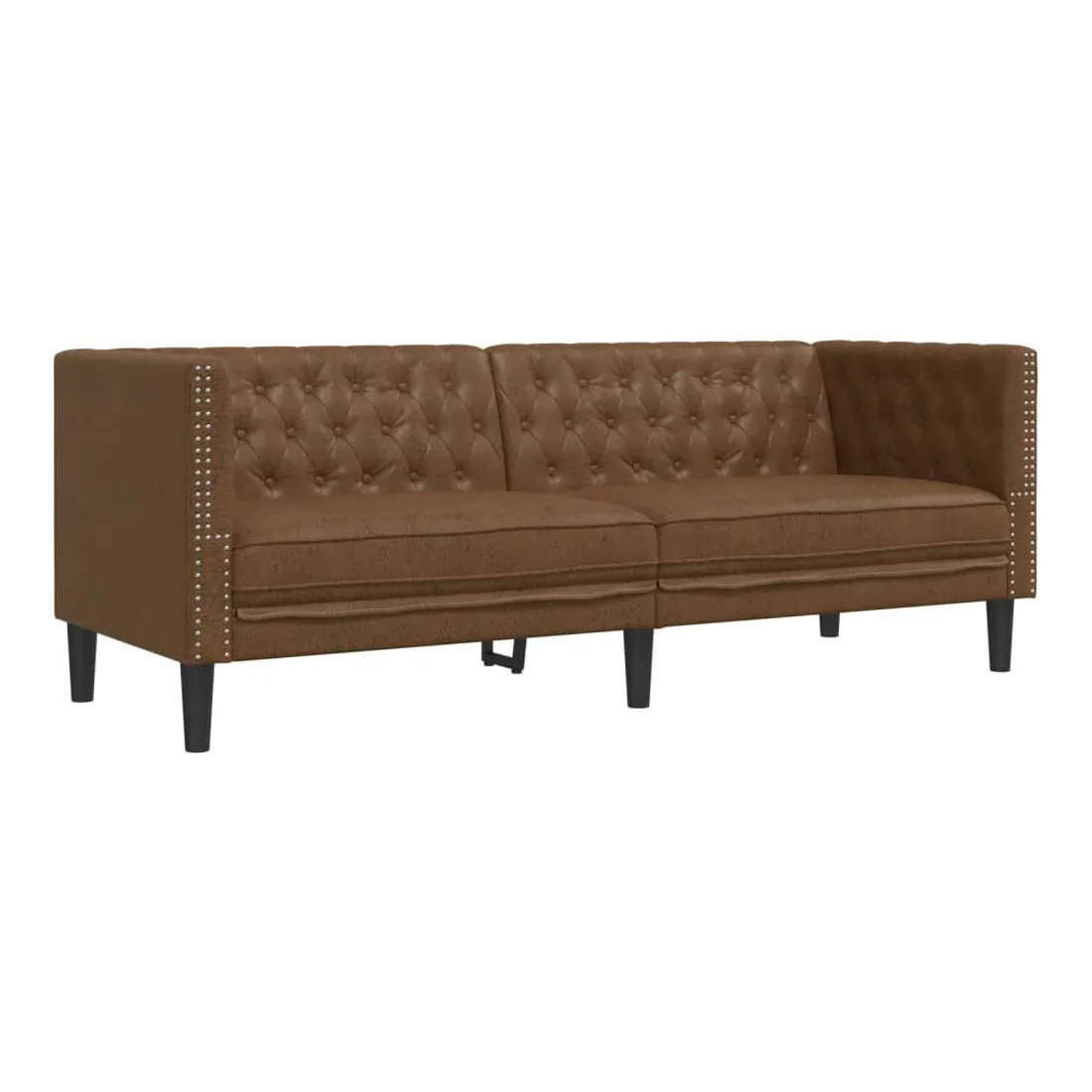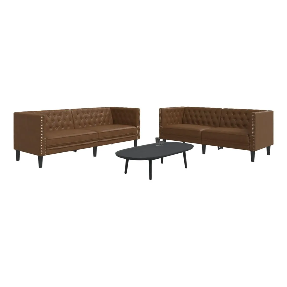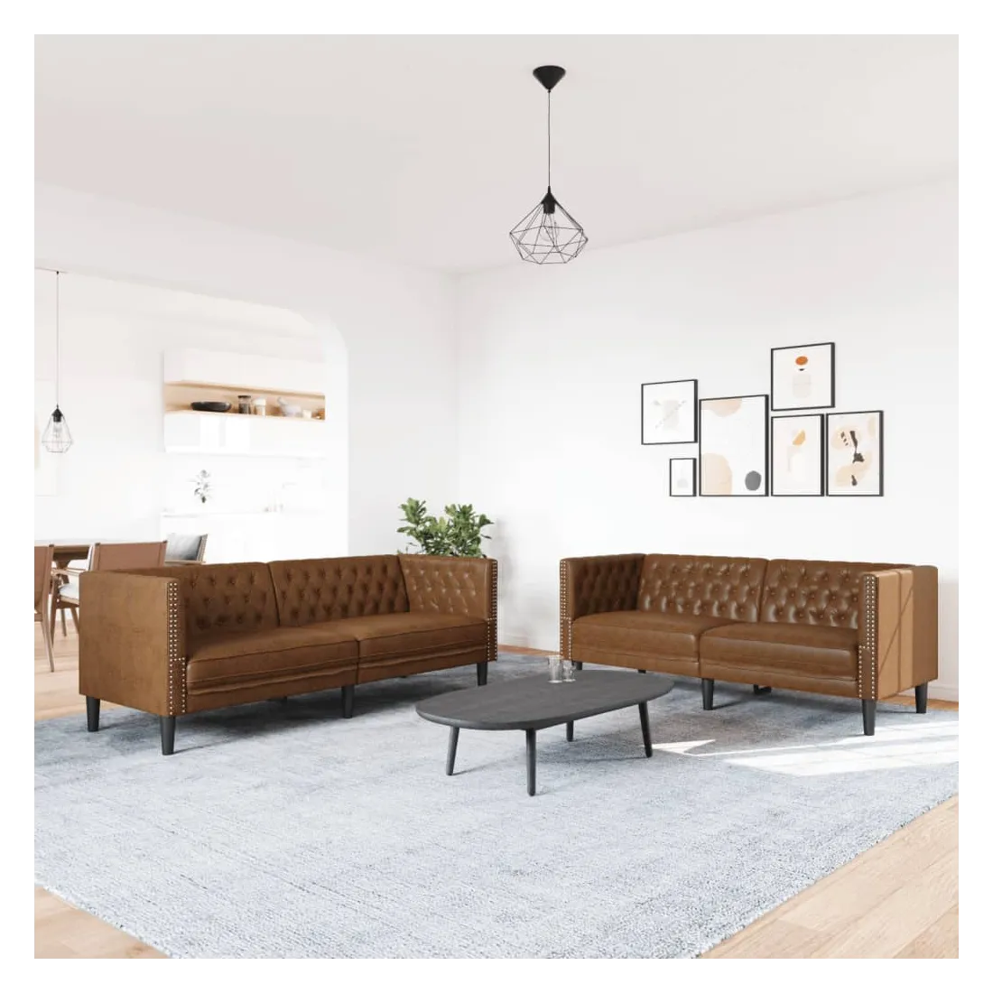 Ensemble de canapé Chesterfield 2 pcs marron similicuir daim