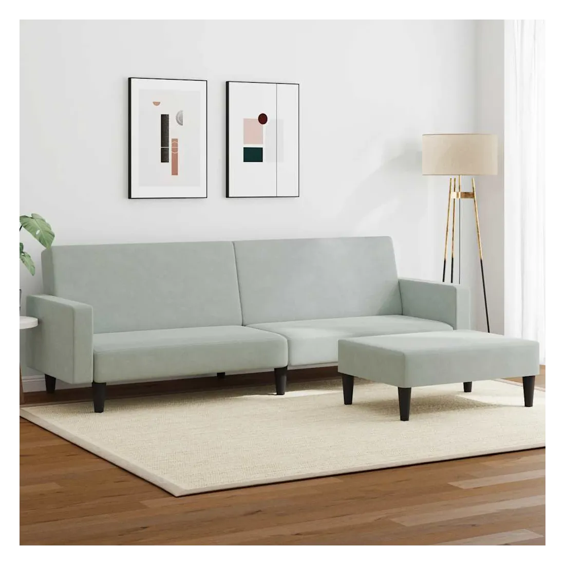 Ce canapé-lit avec repose-pied est une solution parfaite pour accueillir des invités pour la nuit tout en offrant un espace confortable pour s'asseoir pendant la journée. Matériau durable : le velours est un tissu doux et confortable, agréable au toucher.Dossier réglable : vous pouvez pousser les deux coussins de dossier séparés partiellement ou complètement vers le bas pour créer un endroit idéal pour une sieste ou un lit double.Cadre robuste et stable : le cadre en bois du canapé-lit assure robustesse et stabilité.Confort supplémentaire : ce repose-pied est adapté pour y mettre vos pieds en fin de journée ou pour vous offrir un siège supplémentaire dans votre salon ou votre entrée principale.