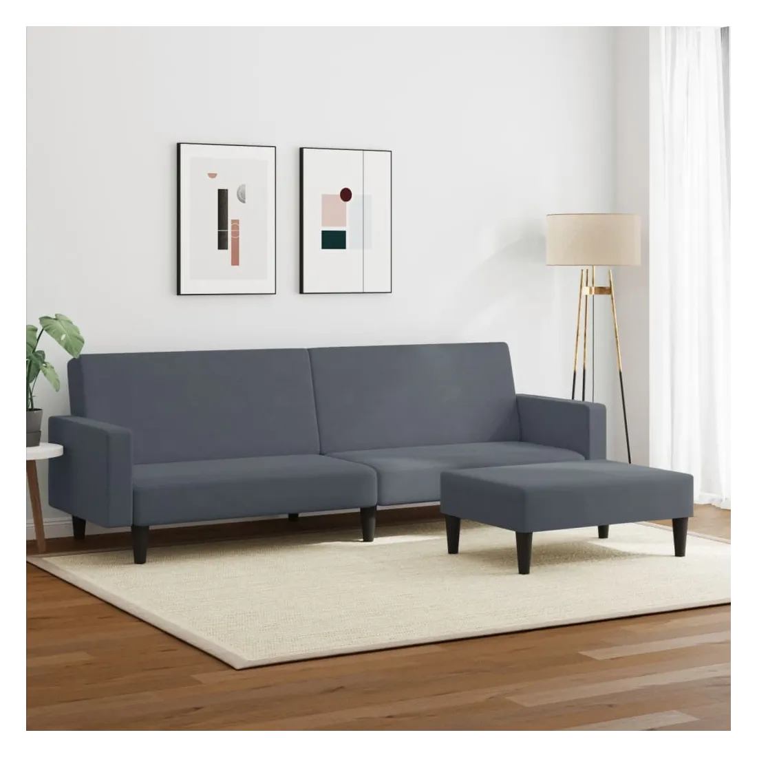 Ce canapé-lit avec repose-pied est une solution parfaite pour accueillir des invités pour la nuit tout en offrant un espace confortable pour s'asseoir pendant la journée. Matériau durable : le velours est un tissu doux et confortable, agréable au toucher.Dossier réglable : vous pouvez pousser les deux coussins de dossier séparés partiellement ou complètement vers le bas pour créer un endroit idéal pour une sieste ou un lit double.Cadre robuste et stable : le cadre en bois du canapé-lit assure robustesse et stabilité.Confort supplémentaire : ce repose-pied est adapté pour y mettre vos pieds en fin de journée ou pour vous offrir un siège supplémentaire dans votre salon ou votre entrée principale.