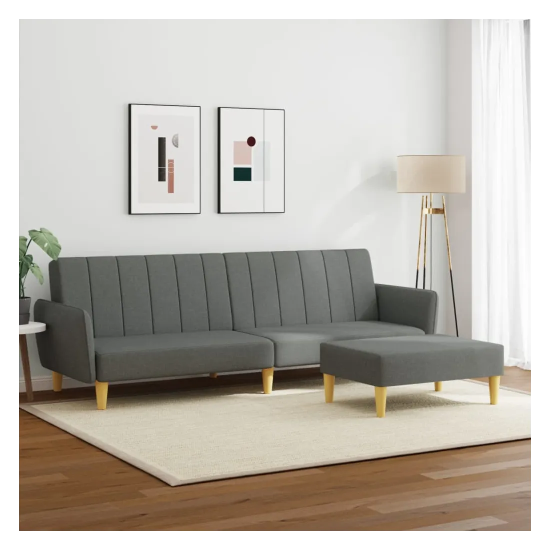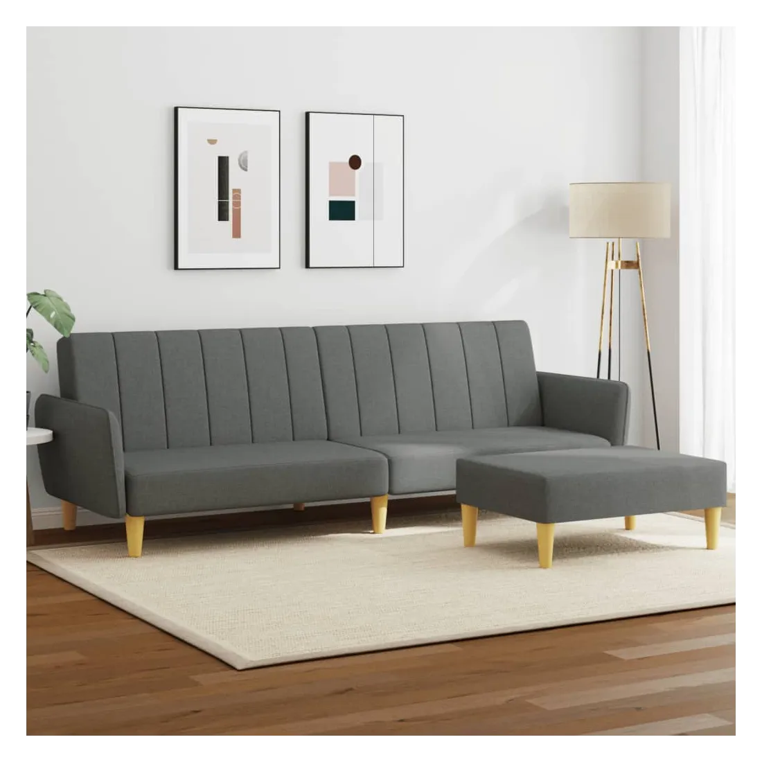 Ce canapé-lit avec repose-pied est une solution parfaite pour accueillir des invités pour la nuit tout en offrant un espace confortable pour s'asseoir pendant la journée. Matériau durable : le tissu présente un aspect simple et épuré, et il est respirant et durable.Dossier réglable : vous pouvez pousser les deux coussins de dossier séparés partiellement ou complètement vers le bas pour créer un endroit idéal pour une sieste ou un lit double.Cadre robuste et stable : le cadre en bois du canapé-lit assure robustesse et stabilité.Confort supplémentaire : ce repose-pied est adapté pour y mettre vos pieds en fin de journée ou pour vous offrir un siège supplémentaire dans votre salon ou votre entrée principale.