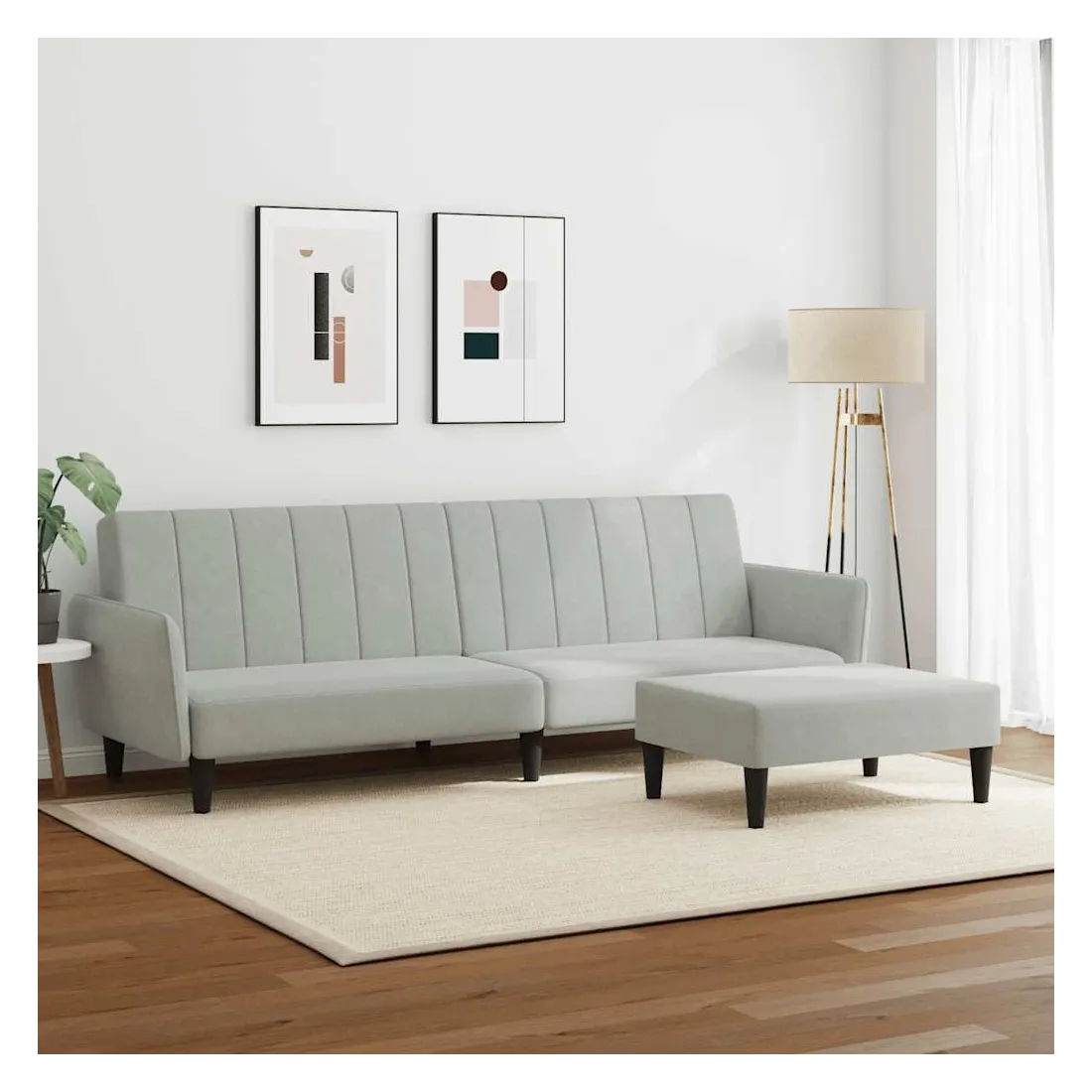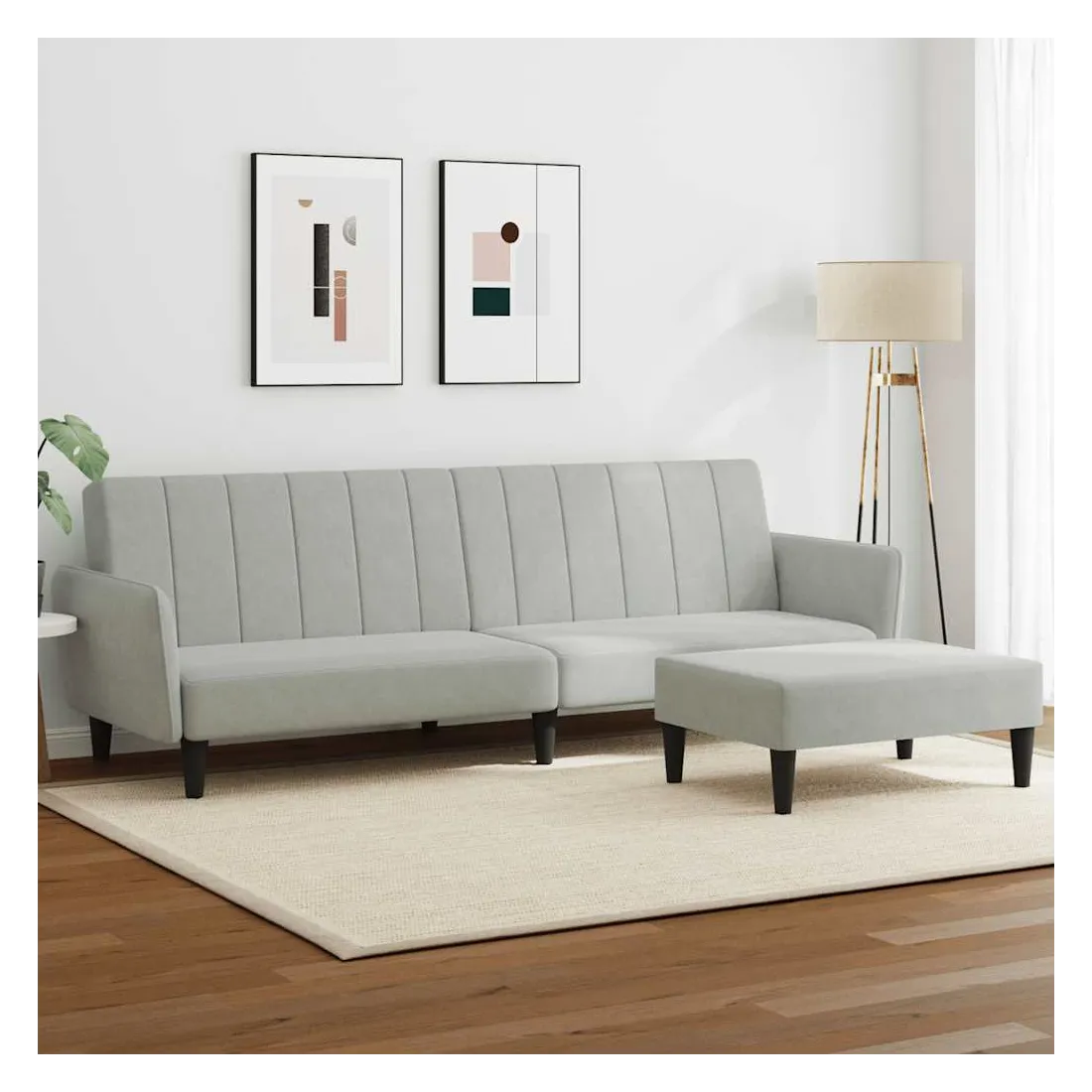 Ce canapé-lit avec repose-pied est une solution parfaite pour accueillir des invités pour la nuit tout en offrant un espace confortable pour s'asseoir pendant la journée. Matériau durable : le velours est un tissu doux et confortable, agréable au toucher.Dossier réglable : vous pouvez pousser les deux coussins de dossier séparés partiellement ou complètement vers le bas pour créer un endroit idéal pour une sieste ou un lit double.Cadre robuste et stable : le cadre en bois du canapé-lit assure robustesse et stabilité.Confort supplémentaire : ce repose-pied est adapté pour y mettre vos pieds en fin de journée ou pour vous offrir un siège supplémentaire dans votre salon ou votre entrée principale.