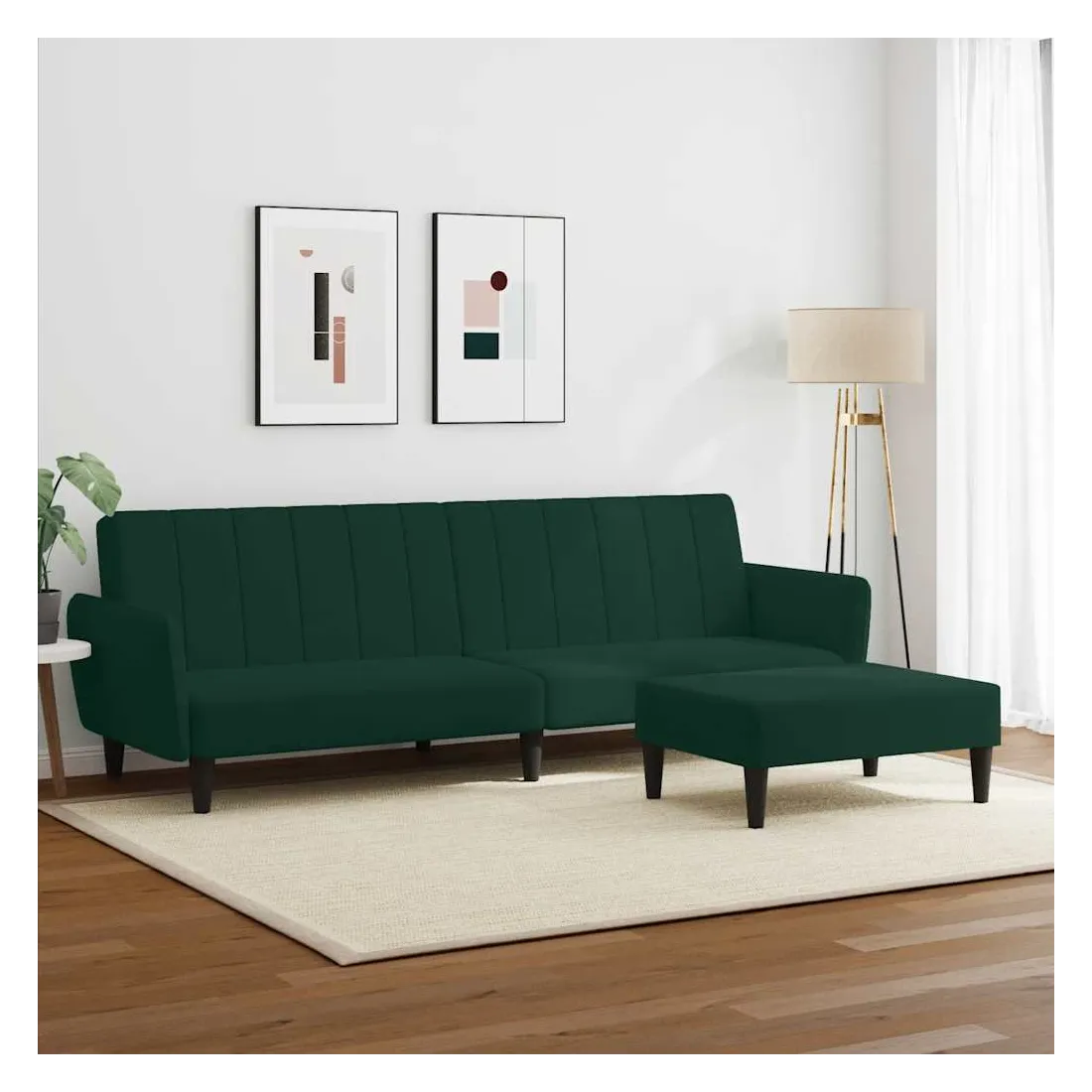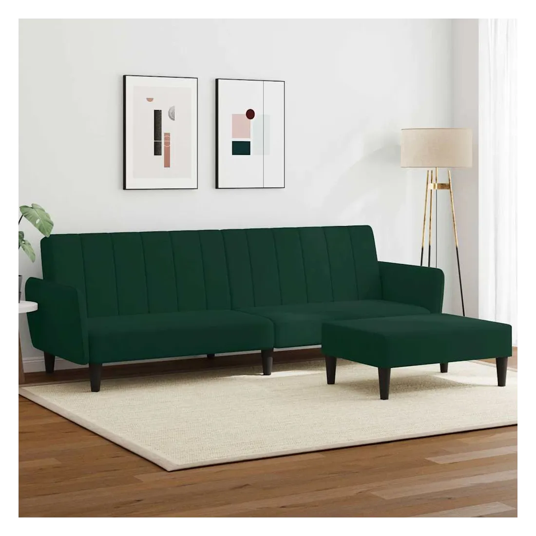 Ce canapé-lit avec repose-pied est une solution parfaite pour accueillir des invités pour la nuit tout en offrant un espace confortable pour s'asseoir pendant la journée. Matériau durable : le velours est un tissu doux et confortable, agréable au toucher.Dossier réglable : vous pouvez pousser les deux coussins de dossier séparés partiellement ou complètement vers le bas pour créer un endroit idéal pour une sieste ou un lit double.Cadre robuste et stable : le cadre en bois du canapé-lit assure robustesse et stabilité.Confort supplémentaire : ce repose-pied est adapté pour y mettre vos pieds en fin de journée ou pour vous offrir un siège supplémentaire dans votre salon ou votre entrée principale.