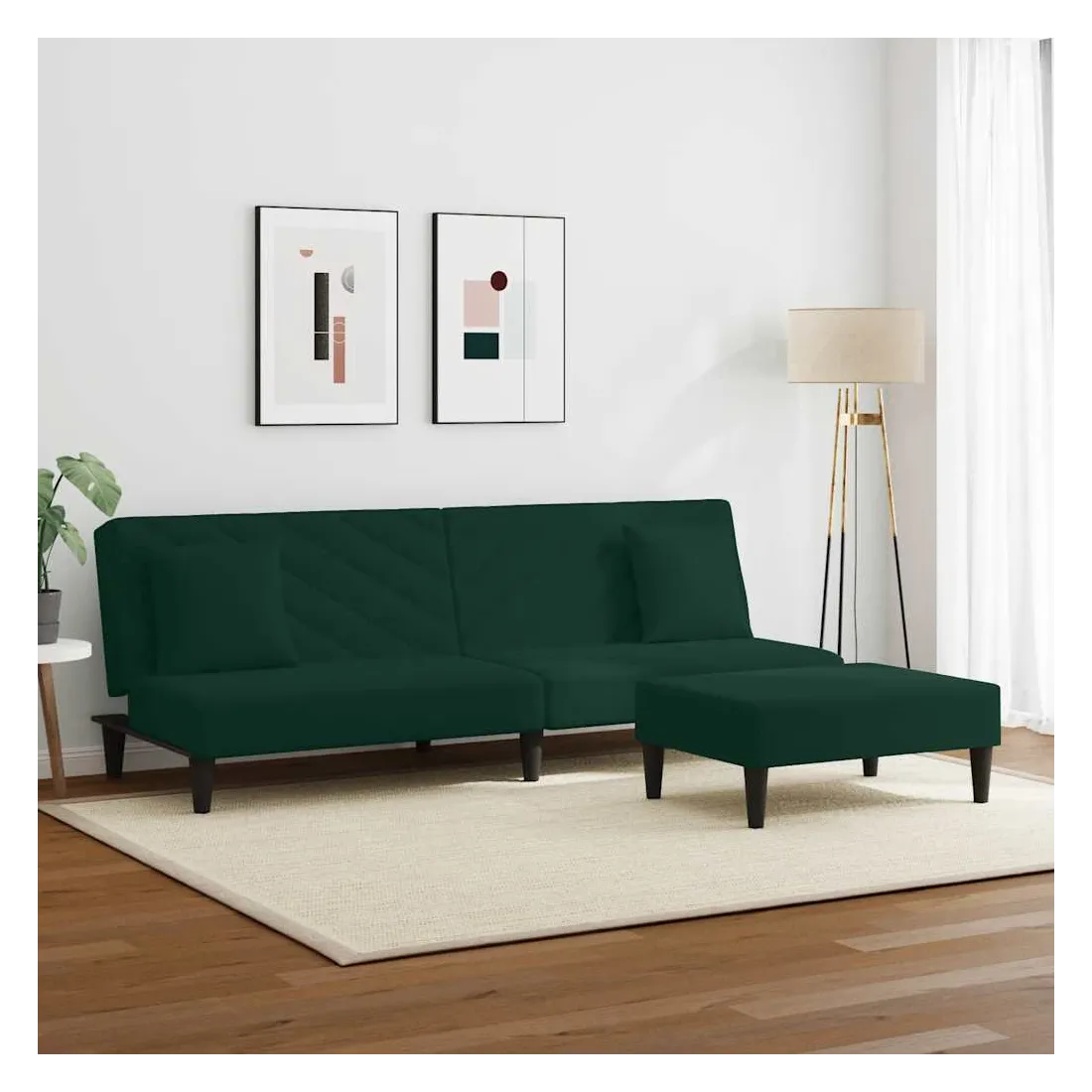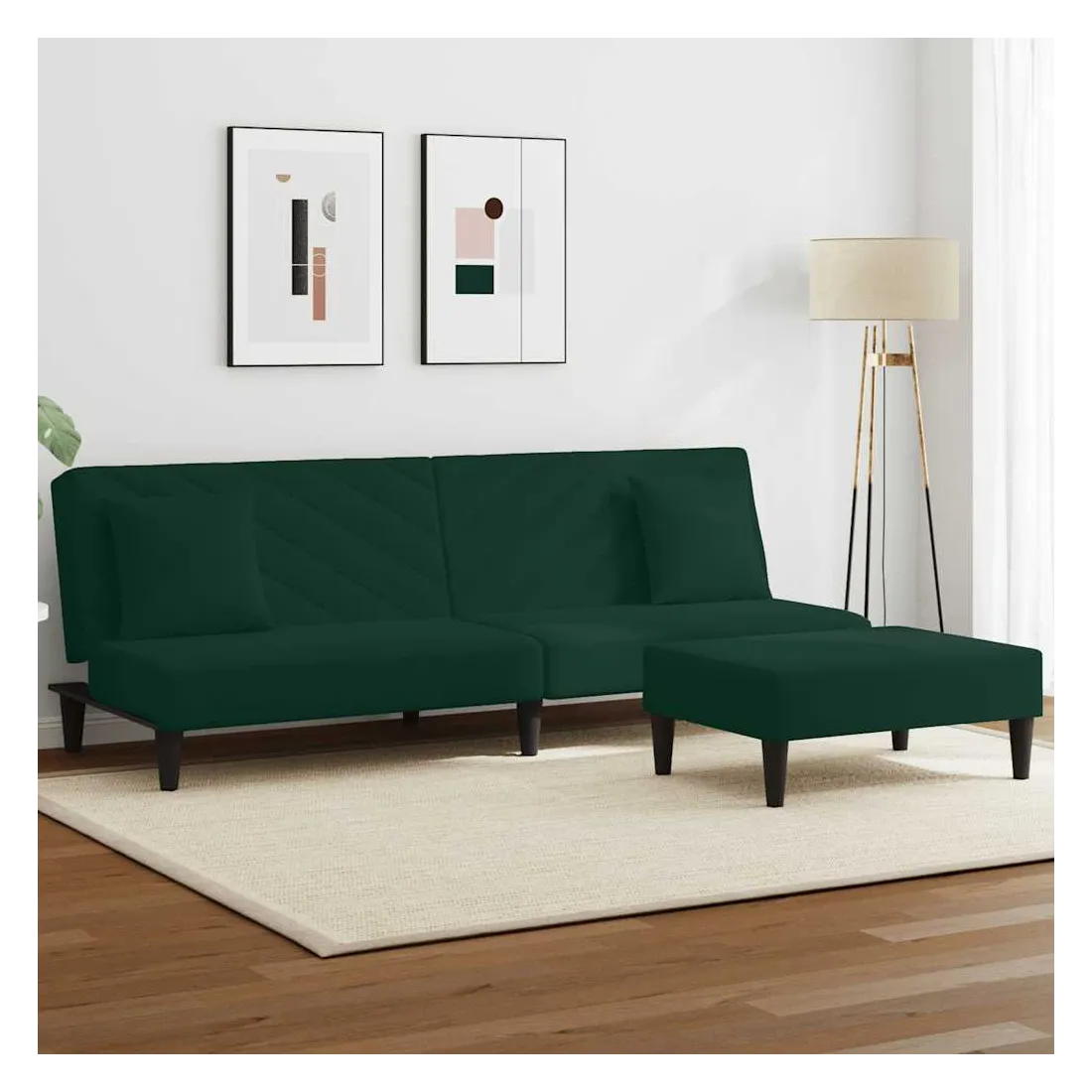 Cet ensemble de canapés est un excellent endroit pour discuter, lire, regarder la télévision ou simplement vous détendre. Il est destiné à être un point central de votre maison. Velours doux : le velours est un tissu doux et confortable, agréable au toucher. Fonction 2 en 1 : le canapé-lit se transforme rapidement et facilement d'un canapé en un lit et à nouveau en canapé. Vous pouvez pousser les deux dossiers séparés partiellement ou complètement vers le bas pour créer un endroit idéal pour une sieste ou un lit double. Pouf polyvalent : ce repose-pied convient pour reposer vos pieds lorsque vous êtes allongé dans un canapé, ou pour vous offrir un siège supplémentaire dans votre pièce. De plus, le design simple et la taille compacte le rendent idéal pour presque tous vos espaces de vie. Expérience de siège confortable : la chaise de canapé est très confortable grâce à l'assise et au dossier très rembourrés. Pieds de soutien : le canapé rembourré est soutenu par des pieds robustes, qui assurent sa stabilité, sa sécurité et sa fermeté.