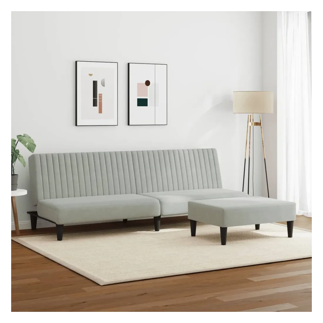 Cet ensemble de canapés est un excellent endroit pour discuter, lire, regarder la télévision ou simplement vous détendre. Il est destiné à être un point central de votre maison. Velours doux : le velours est un tissu doux et confortable, agréable au toucher. Fonction 2 en 1 : le canapé-lit se transforme rapidement et facilement d'un canapé en un lit et à nouveau en canapé. Vous pouvez pousser les deux dossiers séparés partiellement ou complètement vers le bas pour créer un endroit idéal pour une sieste ou un lit double. Pouf polyvalent : ce repose-pied convient pour reposer vos pieds lorsque vous êtes allongé dans un canapé, ou pour vous offrir un siège supplémentaire dans votre pièce. De plus, le design simple et la taille compacte le rendent idéal pour presque tous vos espaces de vie. Expérience de siège confortable : la chaise de canapé est très confortable grâce à l'assise et au dossier très rembourrés. Pieds de soutien : le canapé rembourré est soutenu par des pieds robustes, qui assurent sa stabilité, sa sécurité et sa fermeté.