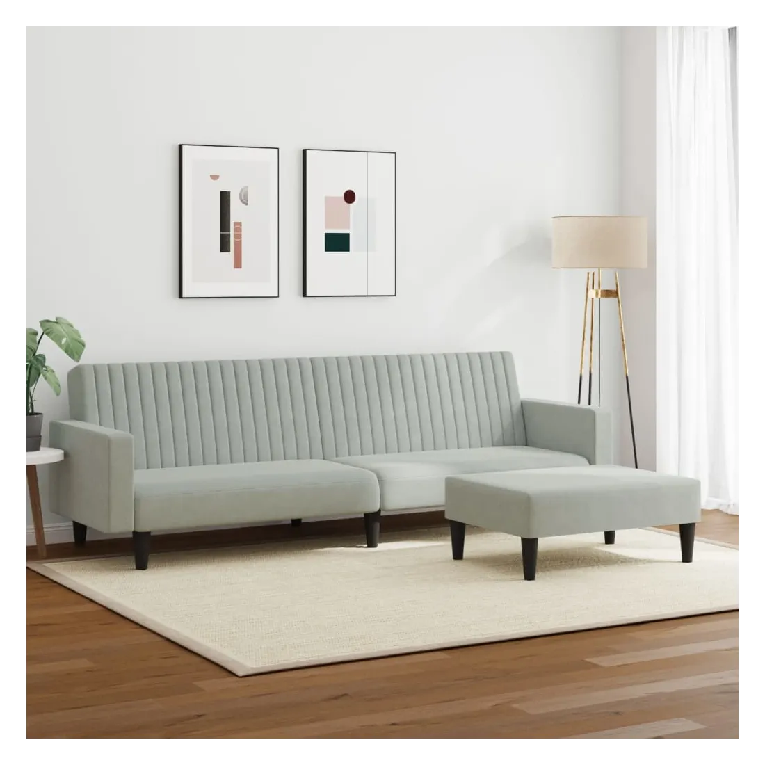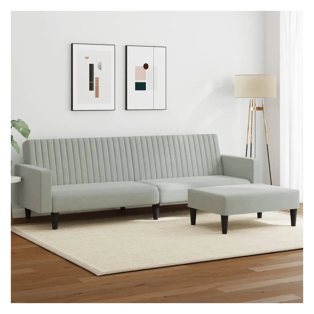 Cet ensemble de canapés est un excellent endroit pour discuter, lire, regarder la télévision ou simplement vous détendre. Il est destiné à être un point central de votre maison. Velours doux : le velours est un tissu doux et confortable, agréable au toucher. Fonction 2 en 1 : le canapé-lit se transforme rapidement et facilement d'un canapé en un lit et à nouveau en canapé. Vous pouvez pousser les deux dossiers séparés partiellement ou complètement vers le bas pour créer un endroit idéal pour une sieste ou un lit double. Pouf polyvalent : ce repose-pied convient pour reposer vos pieds lorsque vous êtes allongé dans un canapé, ou pour vous offrir un siège supplémentaire dans votre pièce. De plus, le design simple et la taille compacte le rendent idéal pour presque tous vos espaces de vie. Expérience de siège confortable : la chaise de canapé est très confortable grâce à l'assise et au dossier très rembourrés. Pieds de soutien : le canapé rembourré est soutenu par des pieds robustes, qui assurent sa stabilité, sa sécurité et sa fermeté.