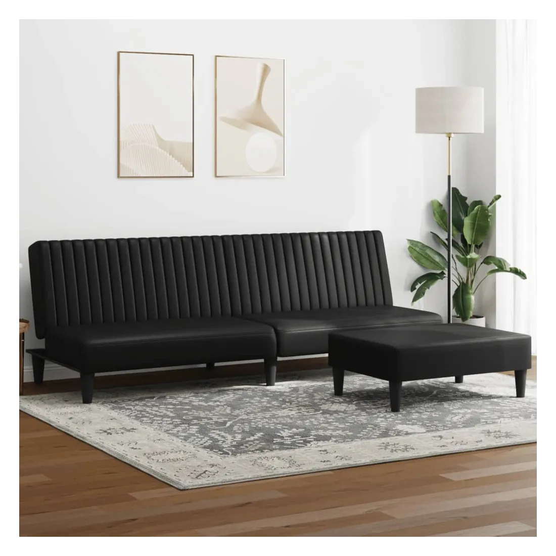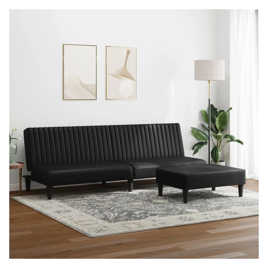 Cet ensemble de canapés est un excellent endroit pour discuter, lire, regarder la télévision ou simplement vous détendre. Il est destiné à être un point central de votre maison. Similicuir durable : le similicuir de qualité supérieure est un matériau très durable. Il est résistant aux taches, ce qui le rend facile à nettoyer avec un chiffon humide. La surface lisse donne également un aspect luxueux et la beauté du cuir véritable. Fonction 2 en 1 : le canapé-lit se transforme rapidement et facilement d'un canapé en un lit et à nouveau en canapé. Vous pouvez pousser les deux dossiers séparés partiellement ou complètement vers le bas pour créer un endroit idéal pour une sieste ou un lit double. Pouf polyvalent : ce repose-pied convient pour reposer vos pieds lorsque vous êtes allongé dans un canapé, ou pour vous offrir un siège supplémentaire dans votre pièce. De plus, le design simple et la taille compacte le rendent idéal pour presque tous vos espaces de vie. Expérience de siège confortable : la chaise de canapé est très confortable grâce à l'assise et au dossier très rembourrés. Pieds de soutien : le canapé rembourré est soutenu par des pieds robustes, qui assurent sa stabilité, sa sécurité et sa fermeté.