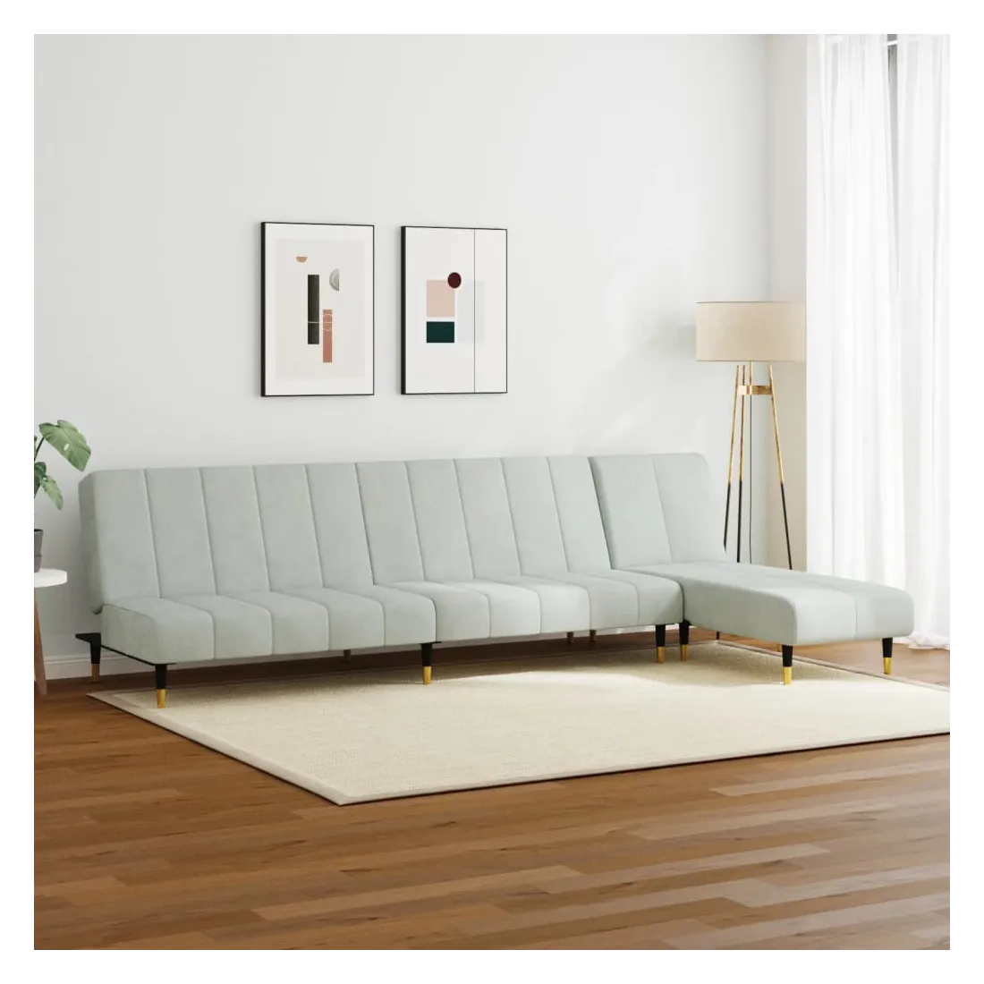 Cet ensemble de canapés est un excellent endroit pour discuter, lire, regarder la télévision ou simplement vous détendre. Il est destiné à être un point central de votre maison. Velours doux : le velours est un tissu doux et confortable, agréable au toucher.Fonction 2 en 1 : le canapé-lit se transforme rapidement et facilement d'un canapé en un lit et à nouveau en canapé. Vous pouvez pousser les deux dossiers séparés partiellement ou complètement vers le bas pour créer un endroit idéal pour une sieste ou un lit double. Chaise longue multifonctionnelle : la chaise longue est un choix judicieux pour les espaces limités. Elle offre trois positions convertibles pour s'asseoir, se prélasser et dormir. Elle peut donc être une chaise longue inclinable confortable pour un usage quotidien ou un lit temporaire pour les invités.Expérience de siège confortable : le canapé de relaxation est très confortable grâce à l'assise et au dossier bien rembourrés.Cadre solide et stable : ce canapé est doté d’un cadre en bois qui offre stabilité et robustesse.