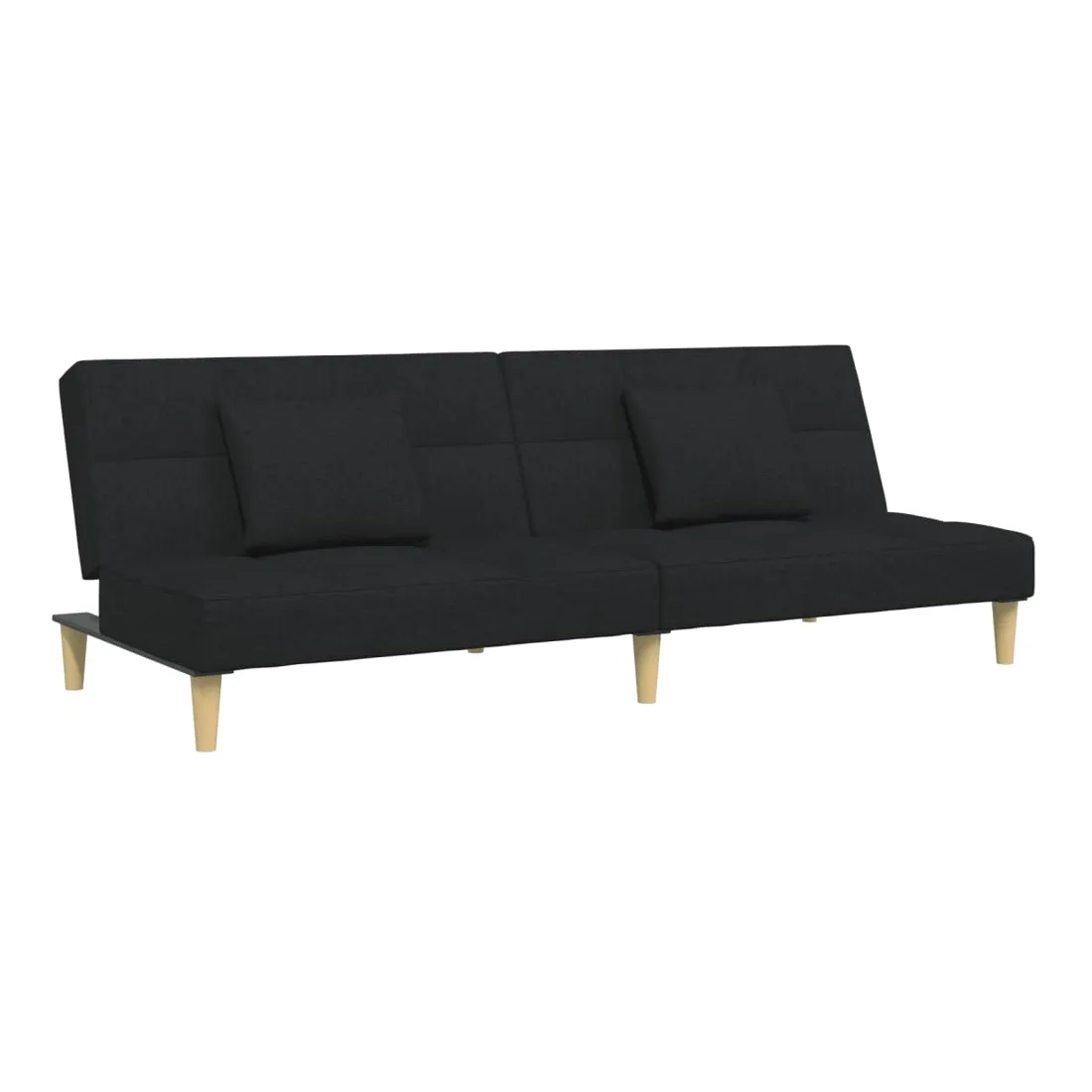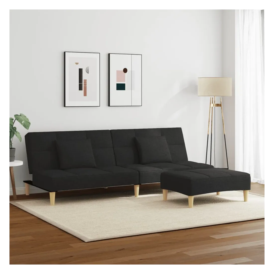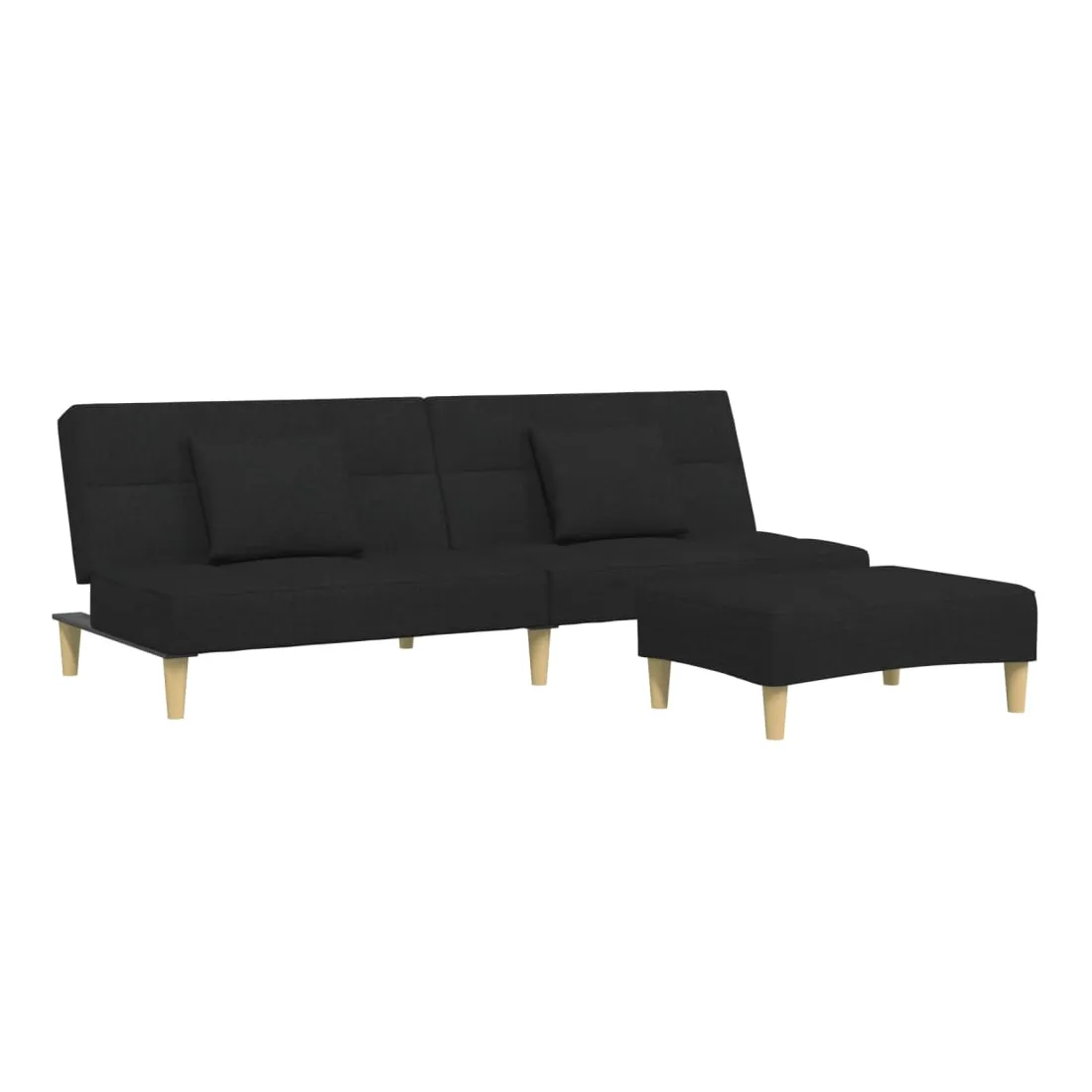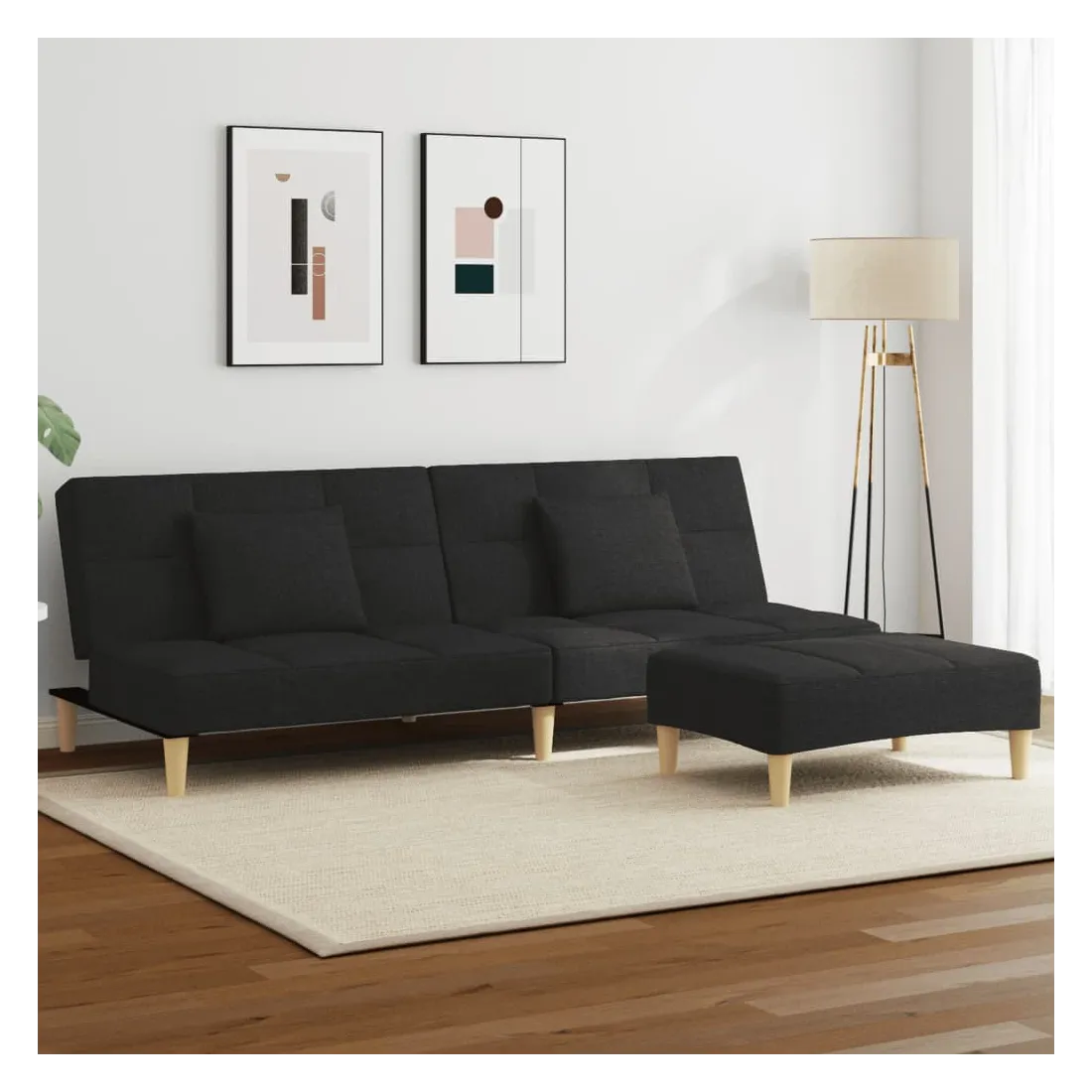 Canapé-lit à 2 places avec repose-pied noir tissu