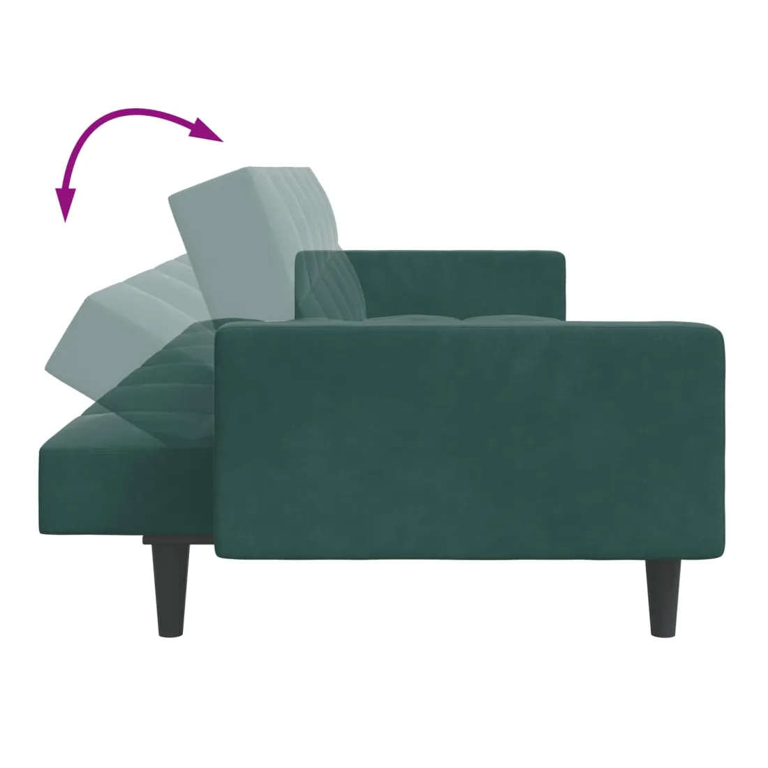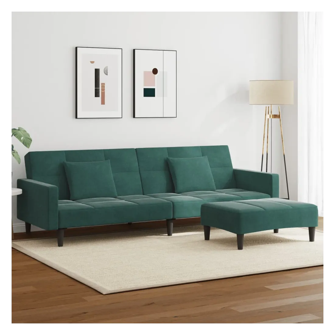Canapé-lit à 2 places avec repose-pied vert foncé velours