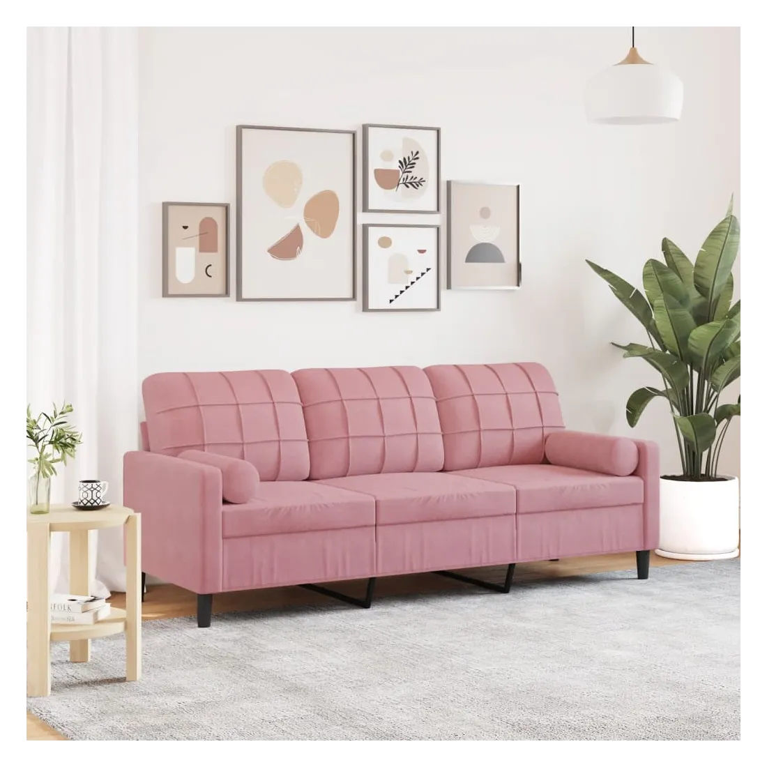 Ce canapé à 3 places est un excellent endroit pour discuter, lire, regarder la télévision ou simplement vous détendre. Il est destiné à être un point central dans votre maison. Matériau doux et confortable : le tissu en velours présente une surface douce et lisse qui offre une sensation agréable contre la peau, vous apportant chaleur et confort ultime.Cadre robuste et stable : le cadre en métal du canapé de salon assure robustesse et stabilité.Expérience d'assise confortable : le canapé est très confortable avec les sièges, les accoudoirs et les oreillers de dossier bien rembourrés.Housses d'oreillers amovibles : grâce à la fermeture éclair, les housses de ces oreillers de traversin sont faciles à retirer et à nettoyer en cas de besoin.Design accrocheur : doté d'un design simple mais moderne, ce canapé est destiné à attirer l'attention dans votre chambre.