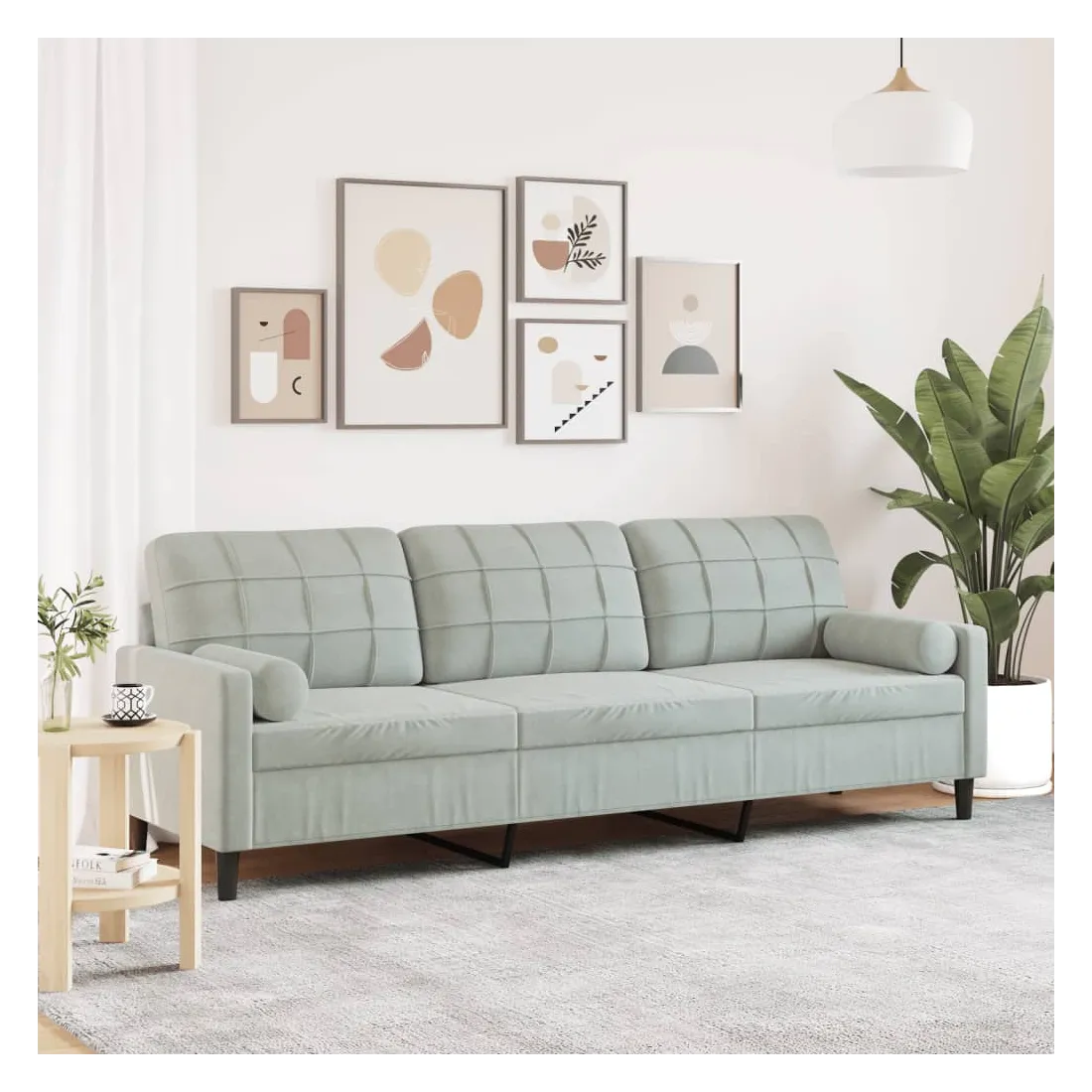 Ce canapé à 3 places est un excellent endroit pour discuter, lire, regarder la télévision ou simplement vous détendre. Il est destiné à être un point central dans votre maison. Matériau doux et confortable : le tissu en velours présente une surface douce et lisse qui offre une sensation agréable contre la peau, vous apportant chaleur et confort ultime.Cadre robuste et stable : le cadre en métal du canapé de salon assure robustesse et stabilité.Expérience d'assise confortable : le canapé est très confortable avec les sièges, les accoudoirs et les oreillers de dossier bien rembourrés.Housses d'oreillers amovibles : grâce à la fermeture éclair, les housses de ces oreillers de traversin sont faciles à retirer et à nettoyer en cas de besoin.Design accrocheur : doté d'un design simple mais moderne, ce canapé est destiné à attirer l'attention dans votre chambre.
