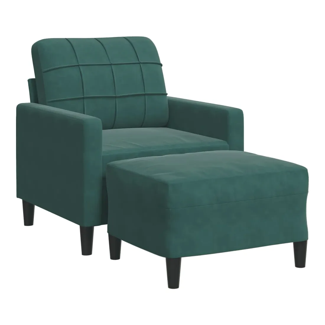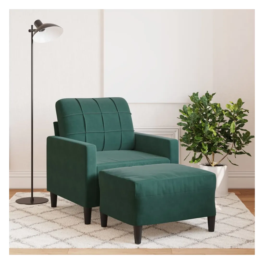Ce fauteuil est un excellent endroit pour discuter, lire, regarder la télévision ou simplement vous détendre. Il est destiné à être un point central de votre maison. Matériau doux et confortable : le tissu en velours présente une surface douce et lisse qui offre une sensation agréable contre la peau, vous apportant chaleur et confort ultime.Cadre robuste et stable : le cadre en métal du canapé de salon assure robustesse et stabilité.Expérience d'assise confortable : le canapé est très confortable avec les sièges, les accoudoirs et les oreillers de dossier bien rembourrés.Pouf polyvalent : le tabouret est polyvalent, servant de repose-pieds confortable lorsque vous vous allongez sur le canapé ou de siège supplémentaire dans votre jardin. De plus, le design simple et la taille compacte le rendent idéal pour presque tous vos espaces de vie.Design accrocheur : doté d'un design simple mais moderne, ce canapé est destiné à attirer l'attention dans votre chambre.