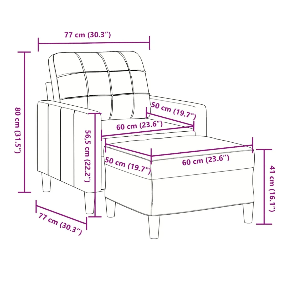 - Profondeur du siège : 50 cm