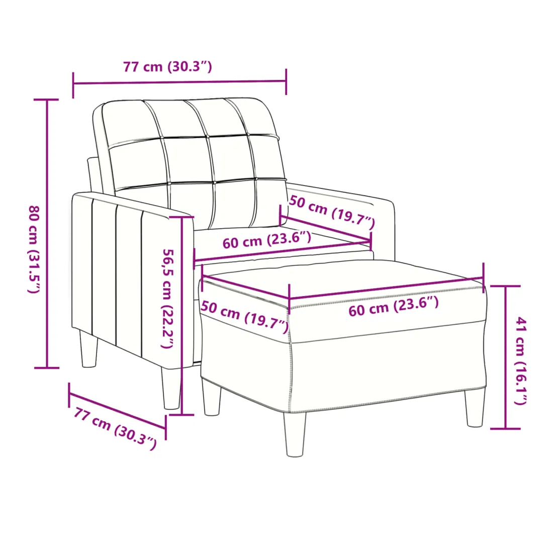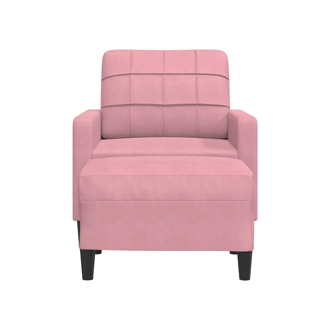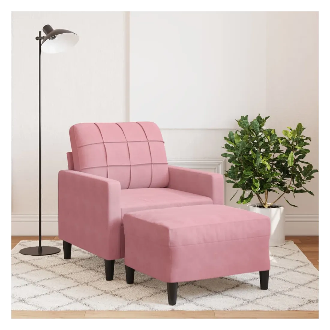 Ce fauteuil est un excellent endroit pour discuter, lire, regarder la télévision ou simplement vous détendre. Il est destiné à être un point central de votre maison. Matériau doux et confortable : le tissu en velours présente une surface douce et lisse qui offre une sensation agréable contre la peau, vous apportant chaleur et confort ultime.Cadre robuste et stable : le cadre en métal du canapé de salon assure robustesse et stabilité.Expérience d'assise confortable : le canapé est très confortable avec les sièges, les accoudoirs et les oreillers de dossier bien rembourrés.Pouf polyvalent : le tabouret est polyvalent, servant de repose-pieds confortable lorsque vous vous allongez sur le canapé ou de siège supplémentaire dans votre jardin. De plus, le design simple et la taille compacte le rendent idéal pour presque tous vos espaces de vie.Design accrocheur : doté d'un design simple mais moderne, ce canapé est destiné à attirer l'attention dans votre chambre.