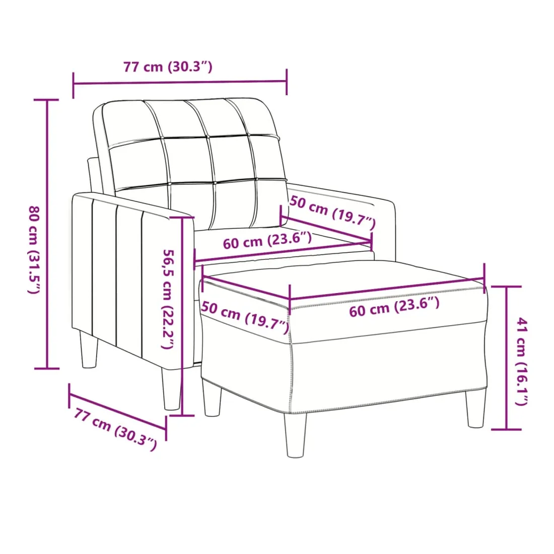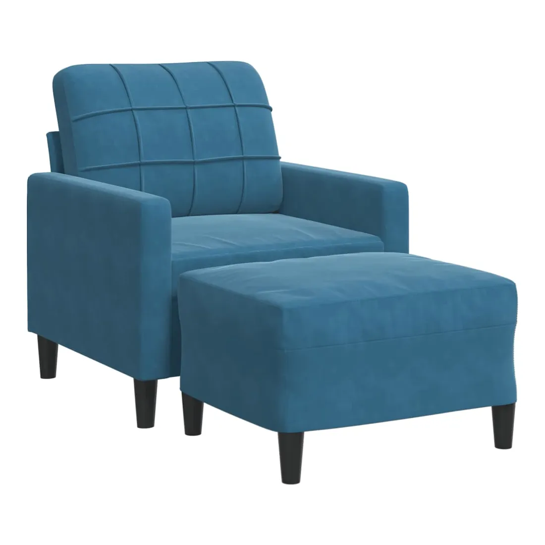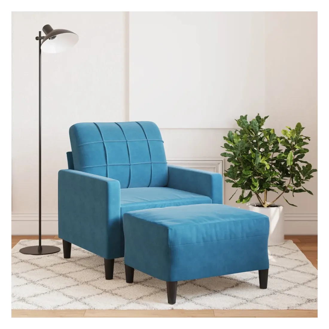 Ce fauteuil est un excellent endroit pour discuter, lire, regarder la télévision ou simplement vous détendre. Il est destiné à être un point central de votre maison. Matériau doux et confortable : le tissu en velours présente une surface douce et lisse qui offre une sensation agréable contre la peau, vous apportant chaleur et confort ultime.Cadre robuste et stable : le cadre en métal du canapé de salon assure robustesse et stabilité.Expérience d'assise confortable : le canapé est très confortable avec les sièges, les accoudoirs et les oreillers de dossier bien rembourrés.Pouf polyvalent : le tabouret est polyvalent, servant de repose-pieds confortable lorsque vous vous allongez sur le canapé ou de siège supplémentaire dans votre jardin. De plus, le design simple et la taille compacte le rendent idéal pour presque tous vos espaces de vie.Design accrocheur : doté d'un design simple mais moderne, ce canapé est destiné à attirer l'attention dans votre chambre.