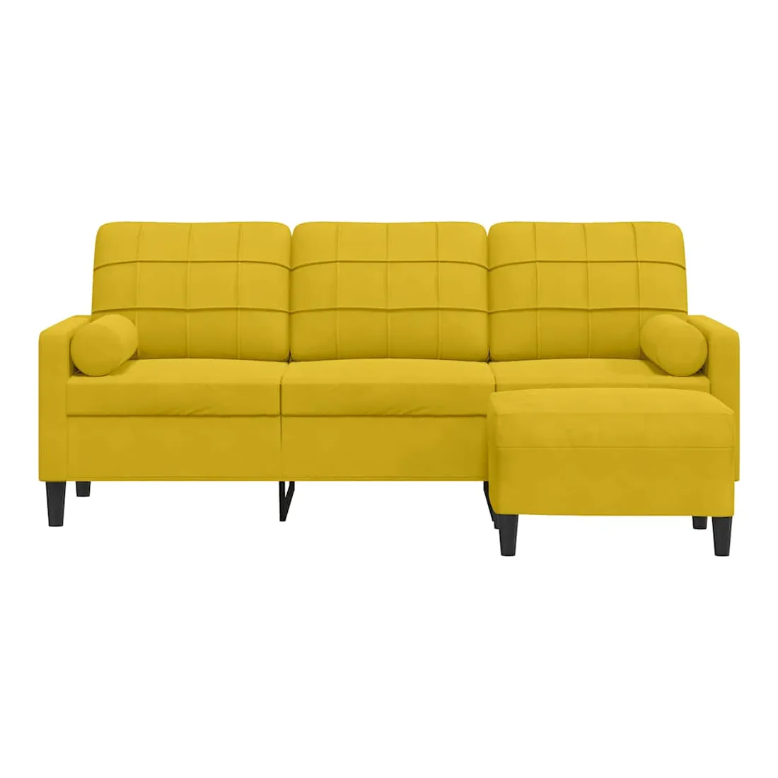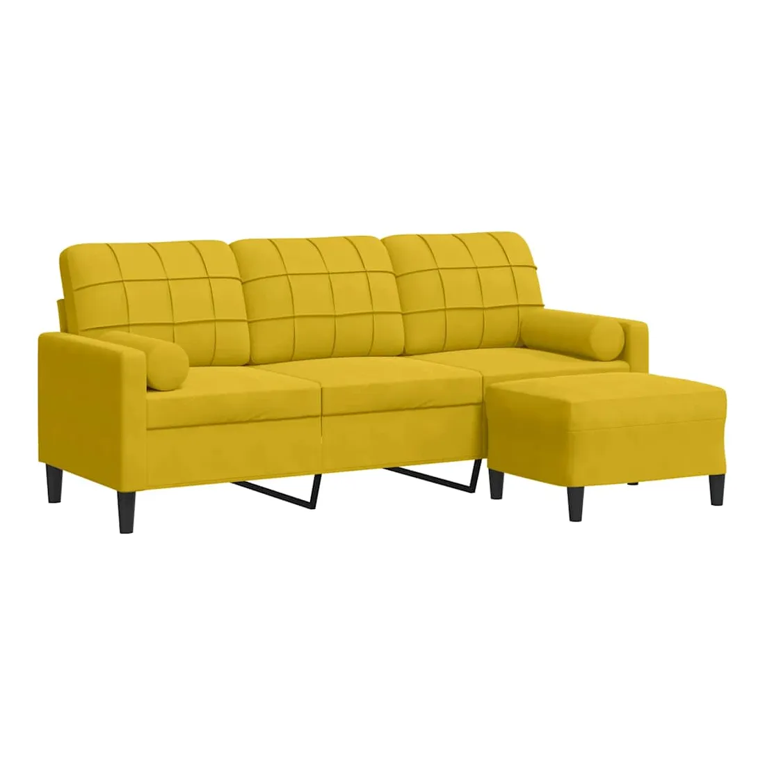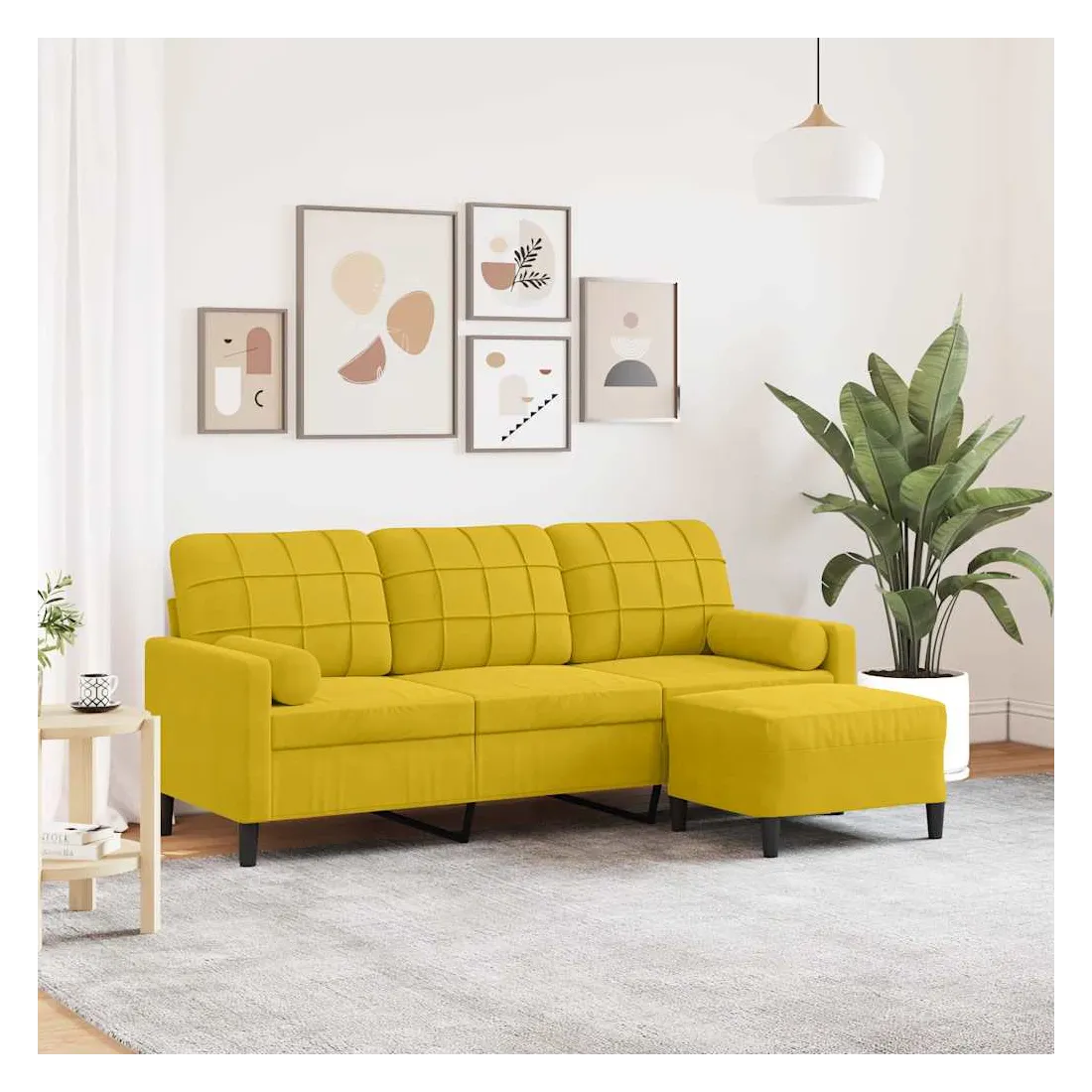 Ce canapé à 3 places est un excellent endroit pour discuter, lire, regarder la télévision ou simplement vous détendre. Il est destiné à être un point central dans votre maison. Matériau doux et confortable : le tissu en velours présente une surface douce et lisse qui offre une sensation agréable contre la peau, vous apportant chaleur et confort ultime.Cadre robuste et stable : le cadre en métal du canapé de salon assure robustesse et stabilité.Expérience d'assise confortable : le canapé est très confortable avec les sièges, les accoudoirs et les oreillers de dossier bien rembourrés.Pouf polyvalent : le tabouret est polyvalent, servant de repose-pieds confortable lorsque vous vous allongez sur le canapé ou de siège supplémentaire dans votre jardin. De plus, le design simple et la taille compacte le rendent idéal pour presque tous vos espaces de vie.Design accrocheur : doté d'un design simple mais moderne, ce canapé est destiné à attirer l'attention dans votre chambre.