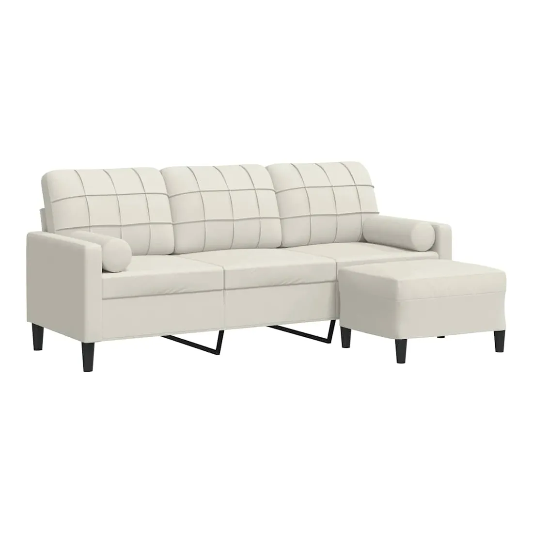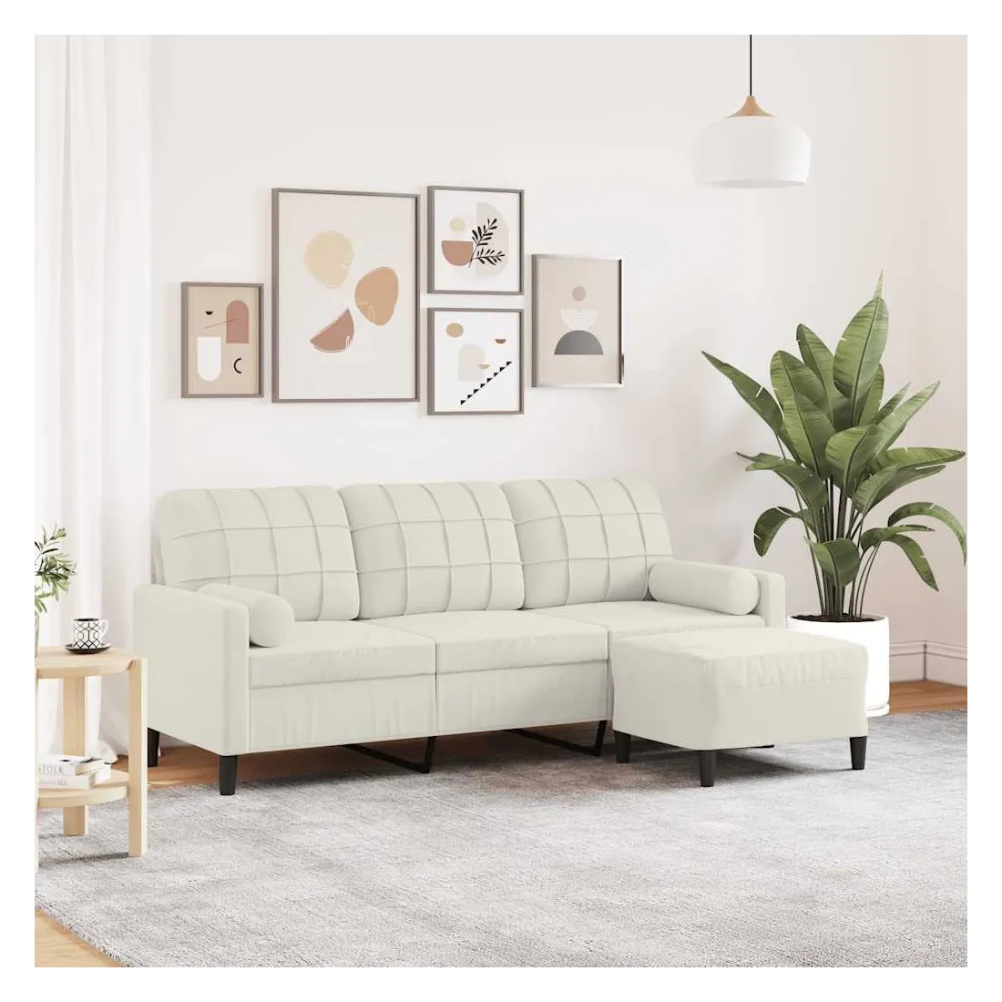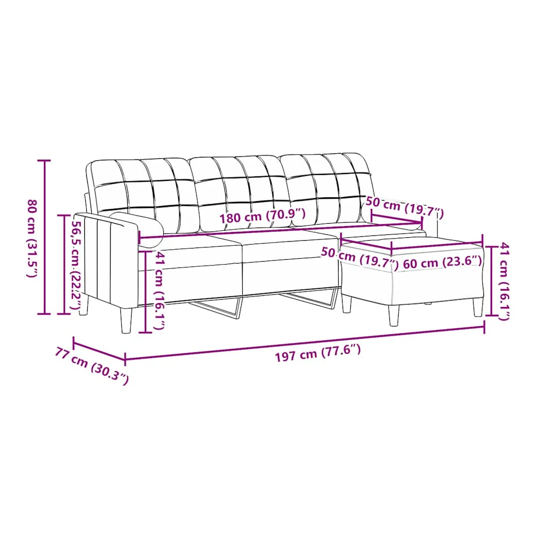 Ce canapé à 3 places est un excellent endroit pour discuter, lire, regarder la télévision ou simplement vous détendre. Il est destiné à être un point central dans votre maison. Matériau doux et confortable : le tissu en velours présente une surface douce et lisse qui offre une sensation agréable contre la peau, vous apportant chaleur et confort ultime.Cadre robuste et stable : le cadre en métal du canapé de salon assure robustesse et stabilité.Expérience d'assise confortable : le canapé est très confortable avec les sièges, les accoudoirs et les oreillers de dossier bien rembourrés.Pouf polyvalent : le tabouret est polyvalent, servant de repose-pieds confortable lorsque vous vous allongez sur le canapé ou de siège supplémentaire dans votre jardin. De plus, le design simple et la taille compacte le rendent idéal pour presque tous vos espaces de vie.Design accrocheur : doté d'un design simple mais moderne, ce canapé est destiné à attirer l'attention dans votre chambre.
