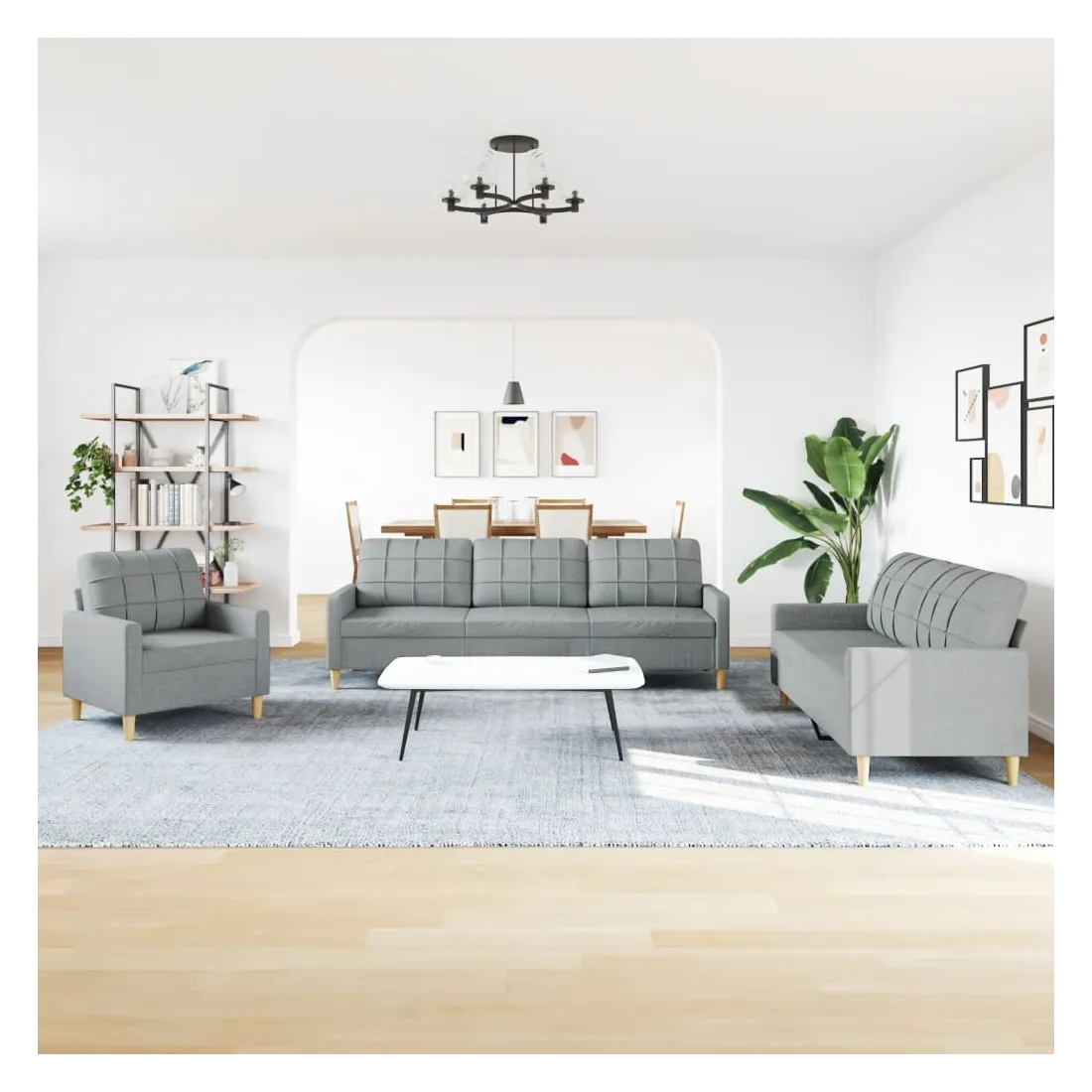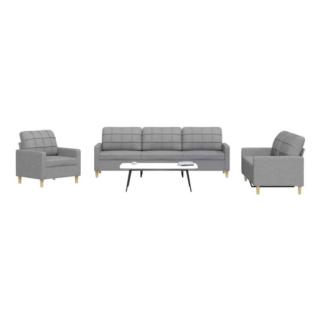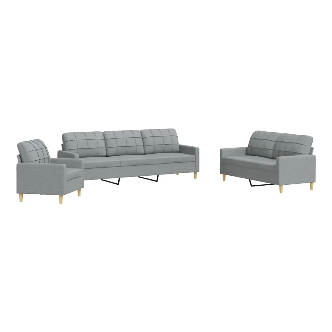 Cet ensemble de canapés est un excellent endroit pour discuter, lire, regarder la télévision ou simplement vous détendre. Il est destiné à être un point central de votre maison. Matériau doux et durable : le tissu en polyester offre une combinaison de douceur, de respirabilité et de durabilité, vous garantissant un confort et une convivialité ultimes. Cadre robuste et stable : le cadre en métal du canapé en tissu assure robustesse et stabilité. Expérience d'assise confortable : le canapé est très confortable avec les sièges, les accoudoirs et les oreillers de dossier bien rembourrés.