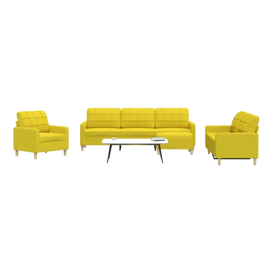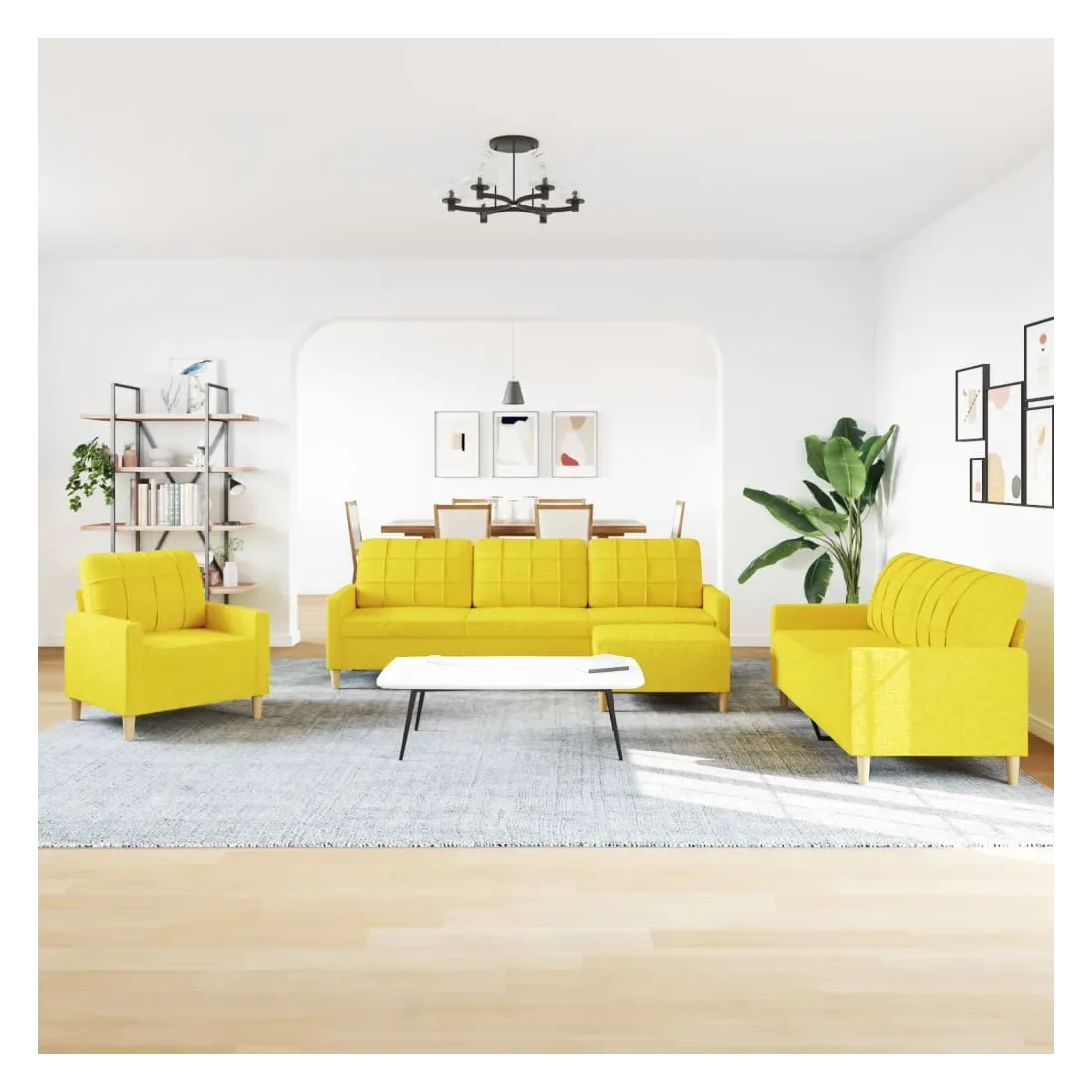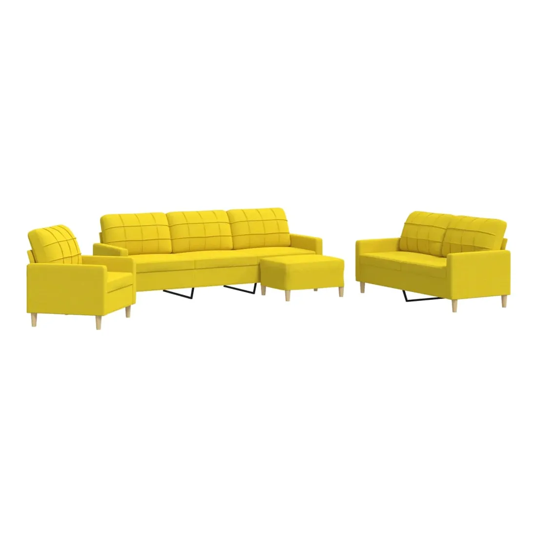 Cet ensemble de canapés est un excellent endroit pour discuter, lire, regarder la télévision ou simplement vous détendre. Il est destiné à être un point central de votre maison. Matériau doux et durable : le tissu en polyester offre une combinaison de douceur, de respirabilité et de durabilité, vous garantissant un confort et une convivialité ultimes. Cadre robuste et stable : le cadre en métal du canapé en tissu assure robustesse et stabilité. Expérience d'assise confortable : le canapé est très confortable avec les sièges, les accoudoirs et les oreillers de dossier bien rembourrés. Pouf polyvalent : ce repose-pied convient pour reposer vos pieds lorsque vous êtes allongé dans un canapé, ou pour vous offrir un siège supplémentaire dans votre pièce. De plus, le design simple et la taille compacte le rendent idéal pour presque tous vos espaces de vie.