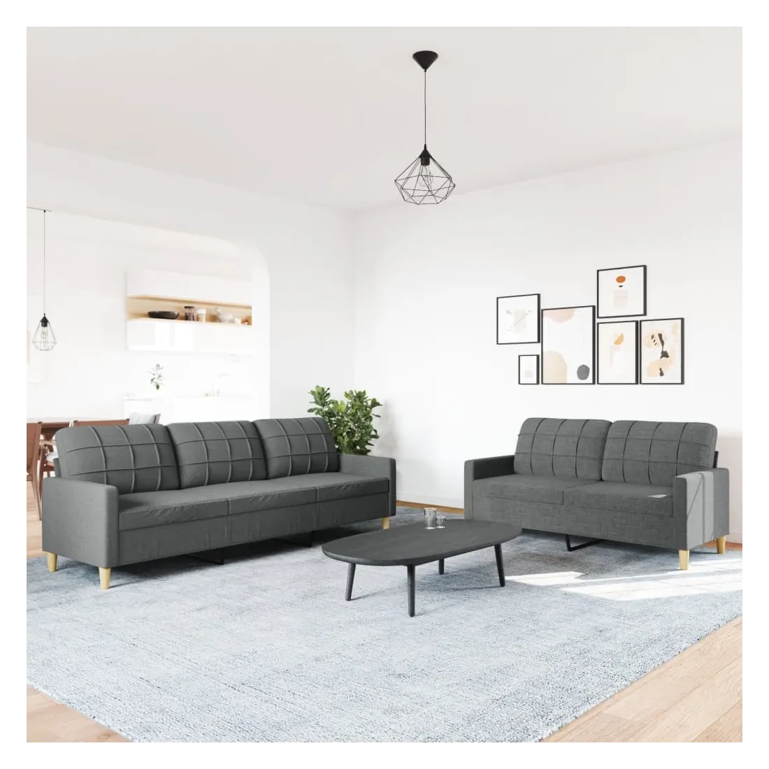 Cet ensemble de canapés est un excellent endroit pour discuter, lire, regarder la télévision ou simplement vous détendre. Il est destiné à être un point central de votre maison. Matériau doux et durable : le tissu en polyester offre une combinaison de douceur, de respirabilité et de durabilité, vous garantissant un confort et une convivialité ultimes. Cadre robuste et stable : le cadre en métal du canapé en tissu assure robustesse et stabilité. Expérience d'assise confortable : le canapé est très confortable avec les sièges, les accoudoirs et les oreillers de dossier bien rembourrés.