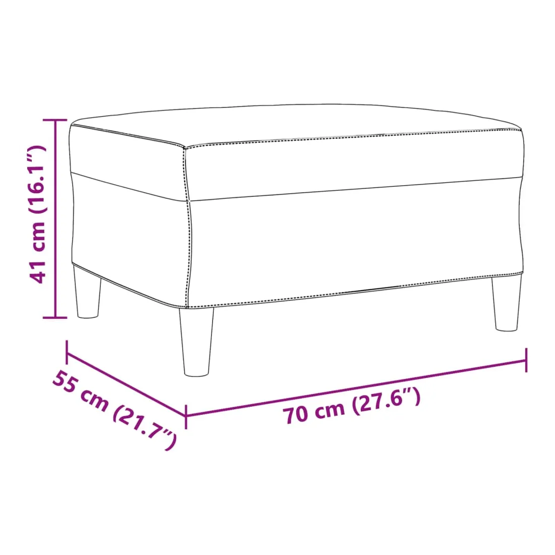 - Dimensions du repose-pied : 70 x 55 x 41 cm (l x P x H)