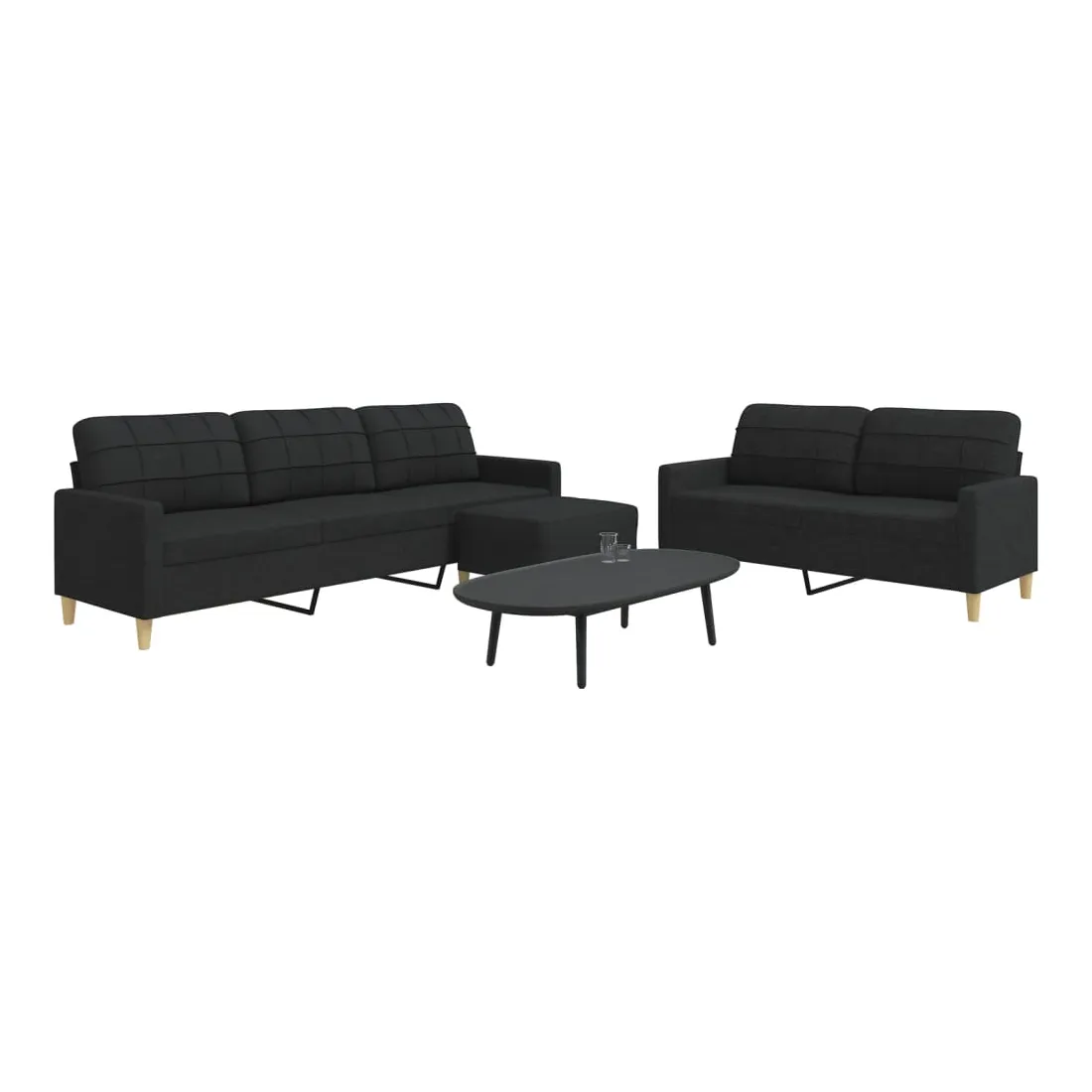 Cet ensemble de canapés est un excellent endroit pour discuter, lire, regarder la télévision ou simplement vous détendre. Il est destiné à être un point central de votre maison. Matériau doux et durable : le tissu en polyester offre une combinaison de douceur, de respirabilité et de durabilité, vous garantissant un confort et une convivialité ultimes. Cadre robuste et stable : le cadre en métal du canapé en tissu assure robustesse et stabilité. Expérience d'assise confortable : le canapé est très confortable avec les sièges, les accoudoirs et les oreillers de dossier bien rembourrés. Pouf polyvalent : ce repose-pied convient pour reposer vos pieds lorsque vous êtes allongé dans un canapé, ou pour vous offrir un siège supplémentaire dans votre pièce. De plus, le design simple et la taille compacte le rendent idéal pour presque tous vos espaces de vie.
