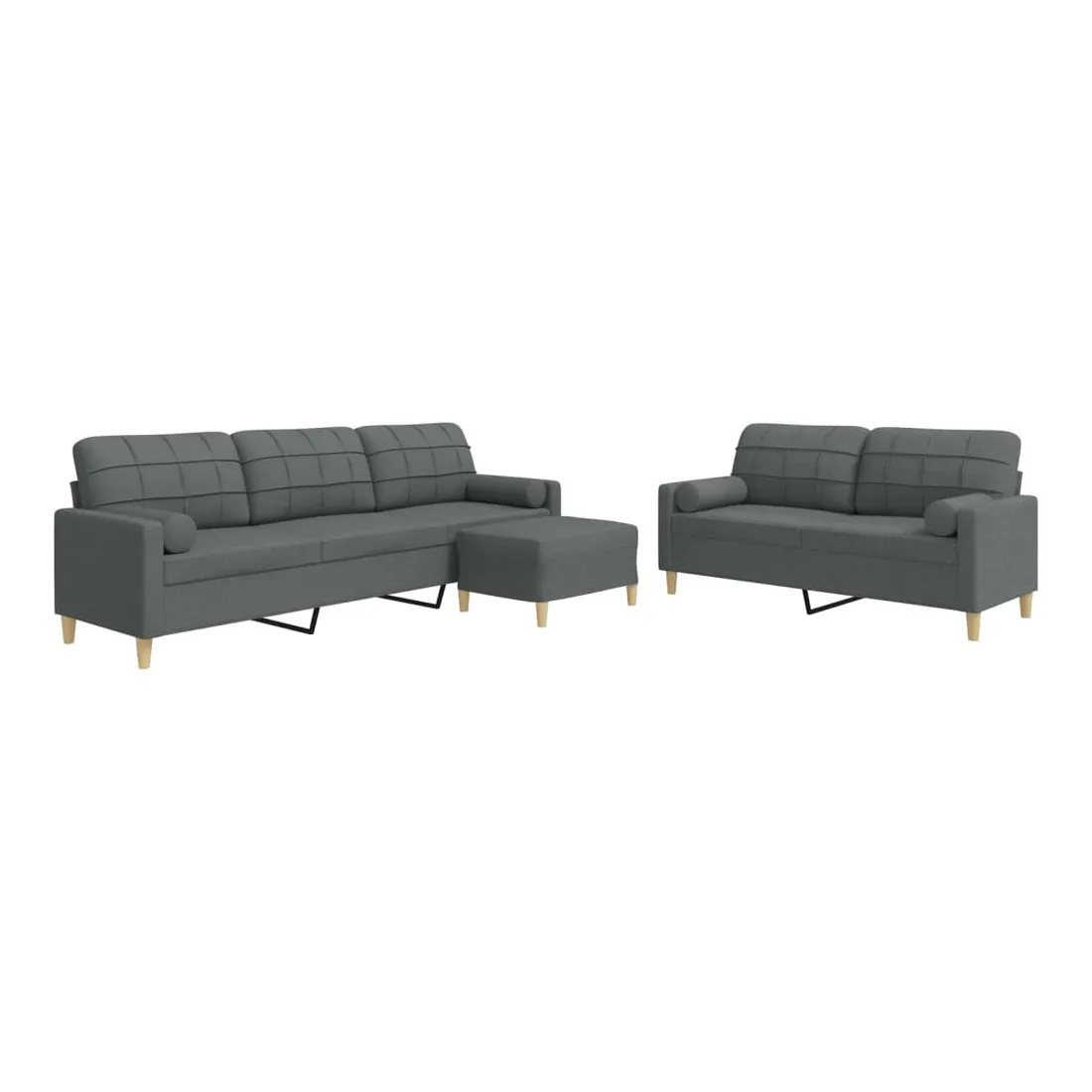 Cet ensemble de canapés est un excellent endroit pour discuter, lire, regarder la télévision ou simplement vous détendre. Il est destiné à être un point central de votre maison. Matériau doux et durable : le tissu en polyester offre une combinaison de douceur, de respirabilité et de durabilité, vous garantissant un confort et une convivialité ultimes. Cadre robuste et stable : le cadre en métal du canapé en tissu assure robustesse et stabilité. Expérience d'assise confortable : le canapé est très confortable avec les sièges, les accoudoirs et les oreillers de dossier bien rembourrés. Oreillers cylindriques pratiques : ces oreillers cylindriques non seulement embellissent votre décor, mais ils peuvent également apporter un confort supplémentaire lorsque vous êtes assis ou allongé. Pouf polyvalent : ce repose-pied convient pour reposer vos pieds lorsque vous êtes allongé dans un canapé, ou pour vous offrir un siège supplémentaire dans votre pièce. De plus, le design simple et la taille compacte le rendent idéal pour presque tous vos espaces de vie.