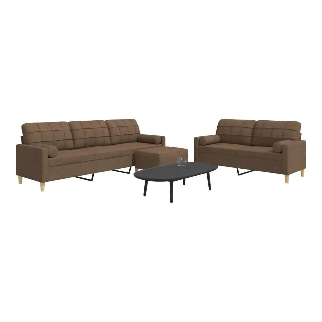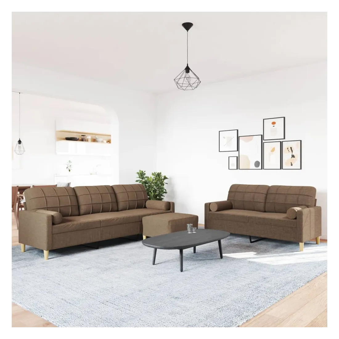 vidaXLCet ensemble de canapés est un excellent endroit pour discuter, lire, regarder la télévision ou simplement vous détendre. Il est destiné à être un point central de votre maison. Matériau doux et durable : le tissu en polyester offre une combinaison de douceur, de respirabilité et de durabilité, vous garantissant un confort et une convivialité ultimes. Cadre robuste et stable : le cadre en métal du canapé en tissu assure robustesse et stabilité. Expérience d'assise confortable : le canapé est très confortable avec les sièges, les accoudoirs et les oreillers de dossier bien rembourrés. Oreillers cylindriques pratiques : ces oreillers cylindriques non seulement embellissent votre décor, mais ils peuvent également apporter un confort supplémentaire lorsque vous êtes assis ou allongé. Pouf polyvalent : ce repose-pied convient pour reposer vos pieds lorsque vous êtes allongé dans un canapé, ou pour vous offrir un siège supplémentaire dans votre pièce. De plus, le design simple et la taille compacte le rendent idéal pour presque tous vos espaces de vie.
