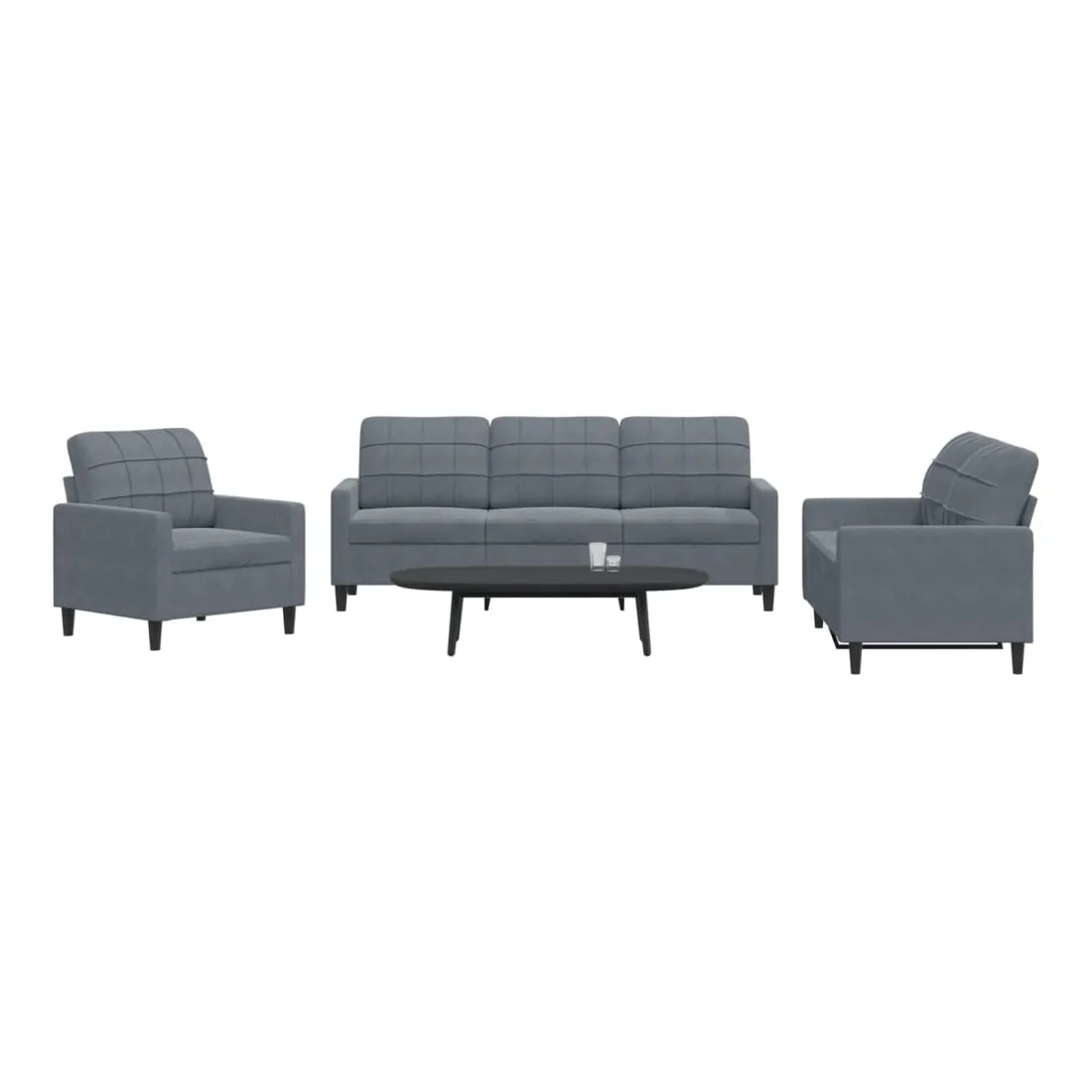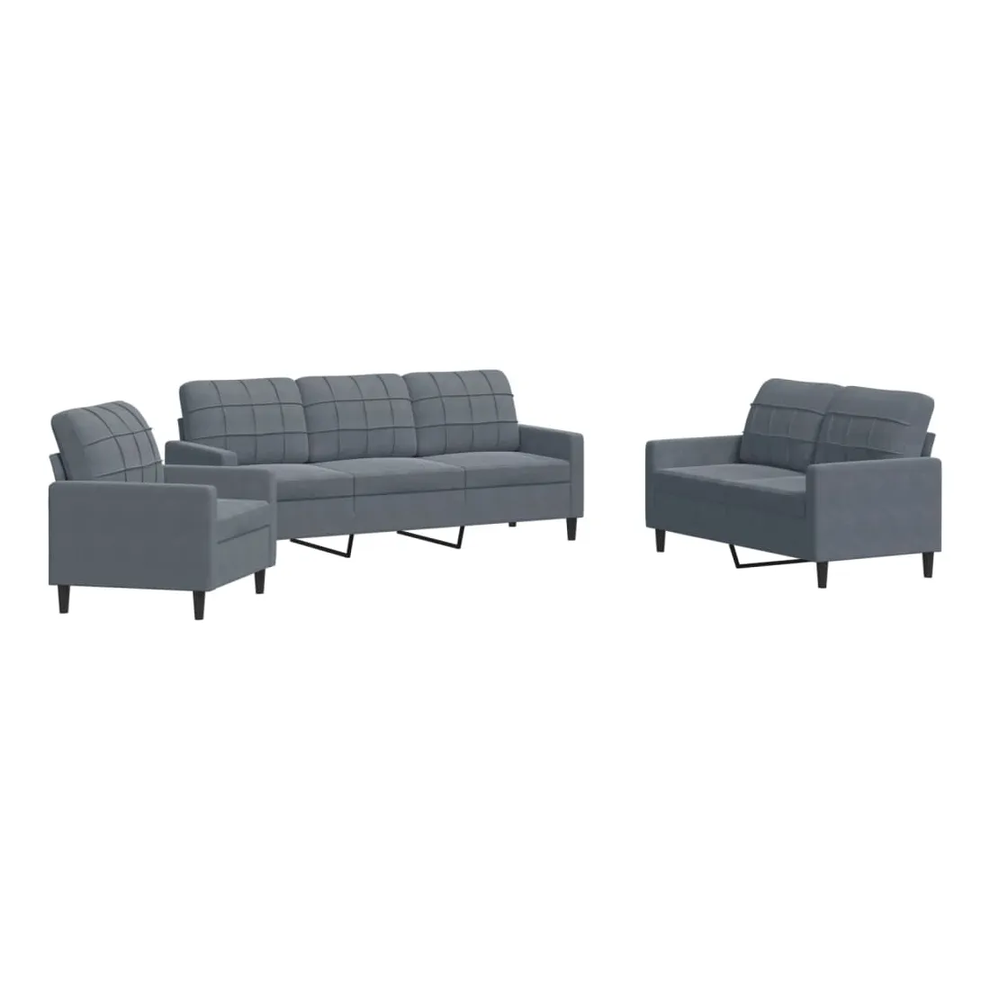 Cet ensemble de canapés est un excellent endroit pour discuter, lire, regarder la télévision ou simplement vous détendre. Il est destiné à être un point central de votre maison. Matériau doux et confortable : le tissu en velours présente une surface douce et lisse qui offre une sensation agréable contre la peau, vous apportant chaleur et confort ultime. Cadre robuste et stable : le cadre en métal du canapé de salon assure robustesse et stabilité. Expérience d'assise confortable : le canapé est très confortable avec les sièges, les accoudoirs et les oreillers de dossier bien rembourrés. Design accrocheur : doté d'un design simple mais moderne, ce canapé est destiné à attirer l'attention dans votre chambre.