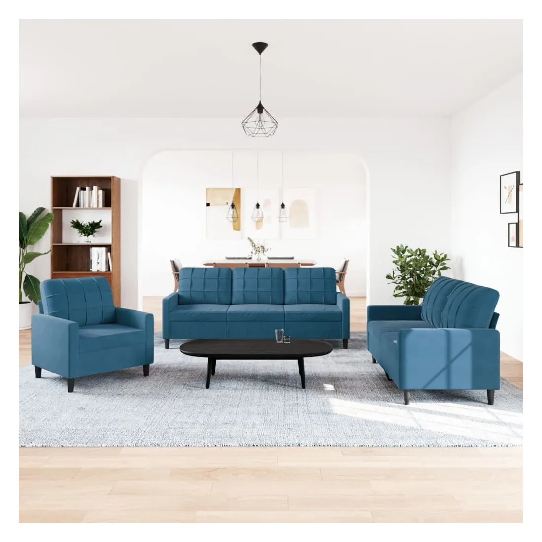 Cet ensemble de canapés est un excellent endroit pour discuter, lire, regarder la télévision ou simplement vous détendre. Il est destiné à être un point central de votre maison. Matériau doux et confortable : le tissu en velours présente une surface douce et lisse qui offre une sensation agréable contre la peau, vous apportant chaleur et confort ultime. Cadre robuste et stable : le cadre en métal du canapé de salon assure robustesse et stabilité. Expérience d'assise confortable : le canapé est très confortable avec les sièges, les accoudoirs et les oreillers de dossier bien rembourrés. Design accrocheur : doté d'un design simple mais moderne, ce canapé est destiné à attirer l'attention dans votre chambre.