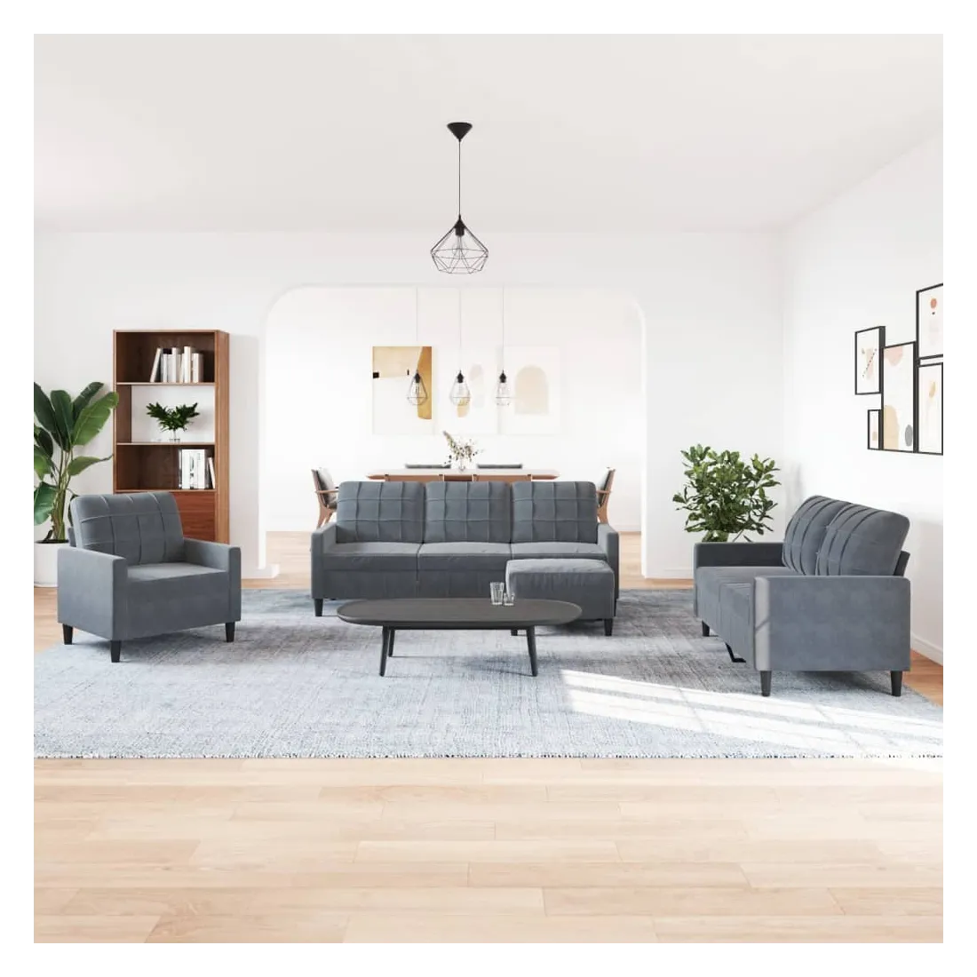 Cet ensemble de canapés est un excellent endroit pour discuter, lire, regarder la télévision ou simplement vous détendre. Il est destiné à être un point central de votre maison. Matériau doux et confortable : le tissu en velours présente une surface douce et lisse qui offre une sensation agréable contre la peau, vous apportant chaleur et confort ultime.Cadre robuste et stable : le cadre en métal du canapé de salon assure robustesse et stabilité.Expérience d'assise confortable : le canapé est très confortable avec les sièges, les accoudoirs et les oreillers de dossier bien rembourrés.Pouf polyvalent : ce repose-pied convient pour reposer vos pieds lorsque vous êtes allongé dans un canapé, ou pour vous offrir un siège supplémentaire dans votre pièce. De plus, le design simple et la taille compacte le rendent idéal pour presque tous vos espaces de vie.Design accrocheur : doté d'un design simple mais moderne, ce canapé est destiné à attirer l'attention dans votre chambre.