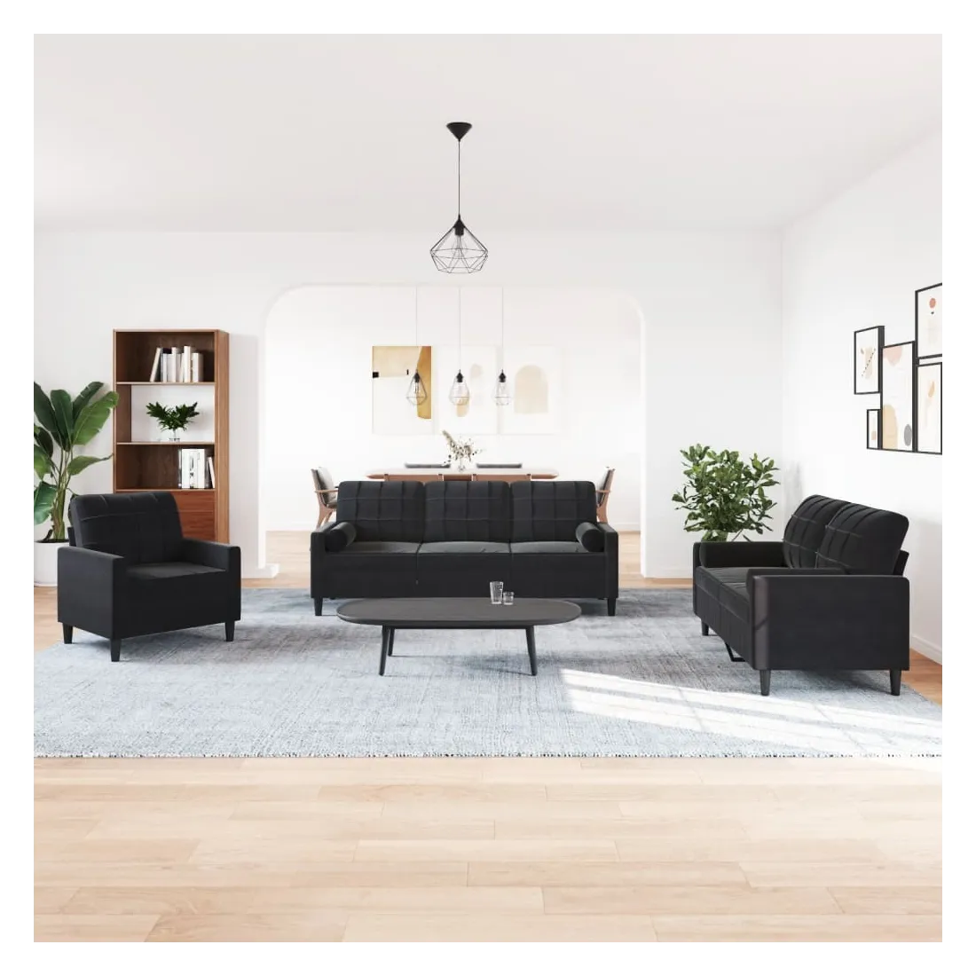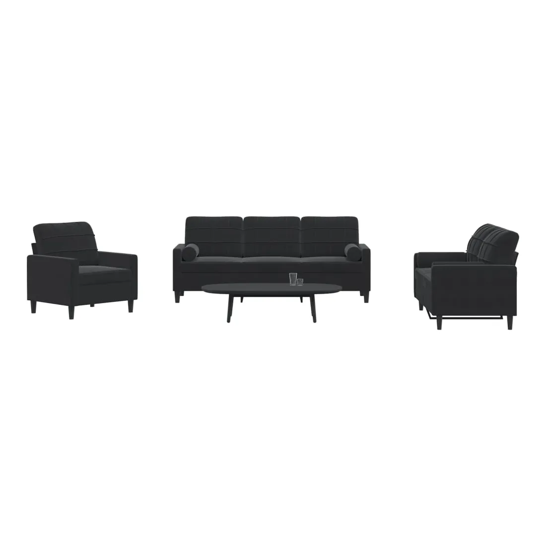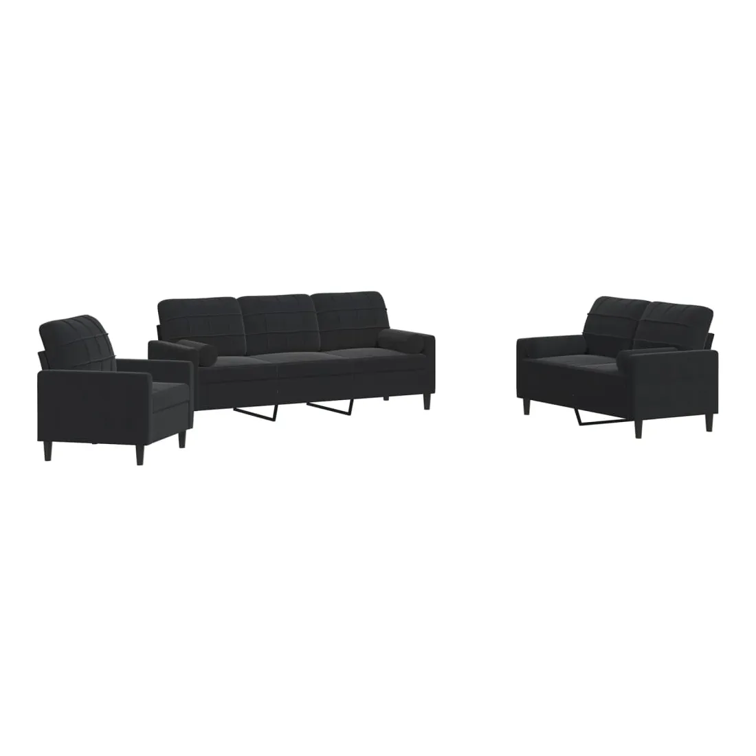 Ensemble de canapés 3pcs et coussins et traversins noir velours