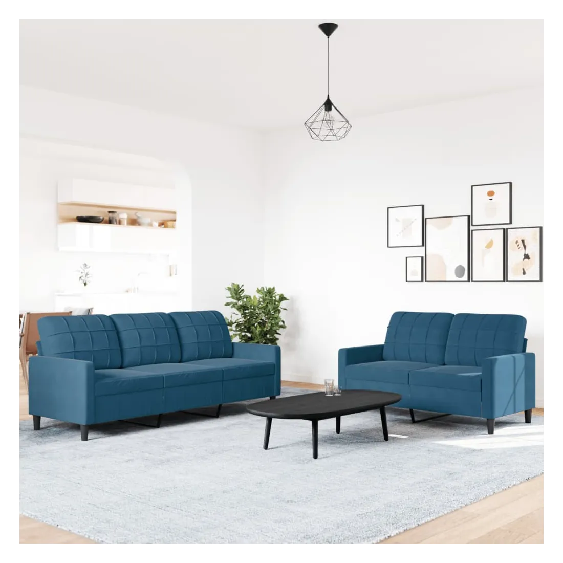 Cet ensemble de canapés est un excellent endroit pour discuter, lire, regarder la télévision ou simplement vous détendre. Il est destiné à être un point central de votre maison. Matériau doux et confortable : le tissu en velours présente une surface douce et lisse qui offre une sensation agréable contre la peau, vous apportant chaleur et confort ultime. Cadre robuste et stable : le cadre en métal du canapé de salon assure robustesse et stabilité. Expérience d'assise confortable : le canapé est très confortable avec les sièges, les accoudoirs et les oreillers de dossier bien rembourrés. Design accrocheur : doté d'un design simple mais moderne, ce canapé est destiné à attirer l'attention dans votre chambre.