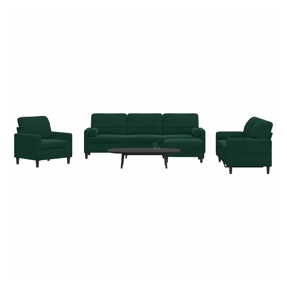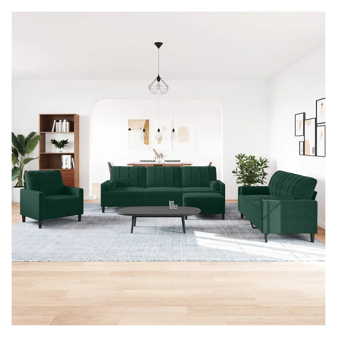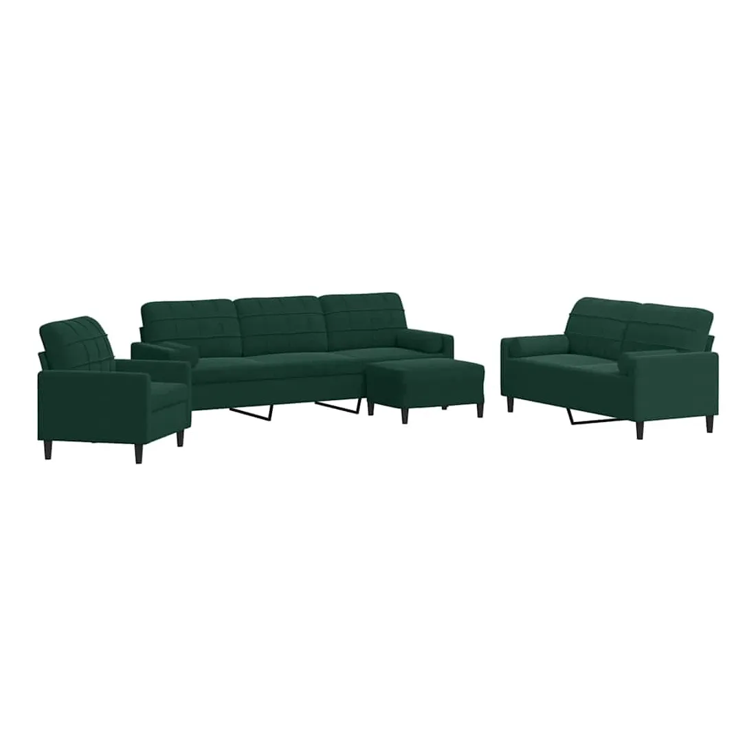 Cet ensemble de canapés est un excellent endroit pour discuter, lire, regarder la télévision ou simplement vous détendre. Il est destiné à être un point central de votre maison. Matériau doux et confortable : le tissu en velours présente une surface douce et lisse qui offre une sensation agréable contre la peau, vous apportant chaleur et confort ultime. Cadre robuste et stable : le cadre en métal du canapé de salon assure robustesse et stabilité. Expérience d'assise confortable : le canapé est très confortable avec les sièges, les accoudoirs et les oreillers de dossier bien rembourrés. Les traversins inclus ne font pas qu'embellir votre décor, ils peuvent aussi ajouter un confort supplémentaire lorsque vous êtes assis ou allongé. Pouf polyvalent : ce repose-pied convient pour reposer vos pieds lorsque vous êtes allongé dans un canapé, ou pour vous offrir un siège supplémentaire dans votre pièce. De plus, le design simple et la taille compacte le rendent idéal pour presque tous vos espaces de vie.Design accrocheur : doté d'un design simple mais moderne, ce canapé est destiné à attirer l'attention dans votre chambre.