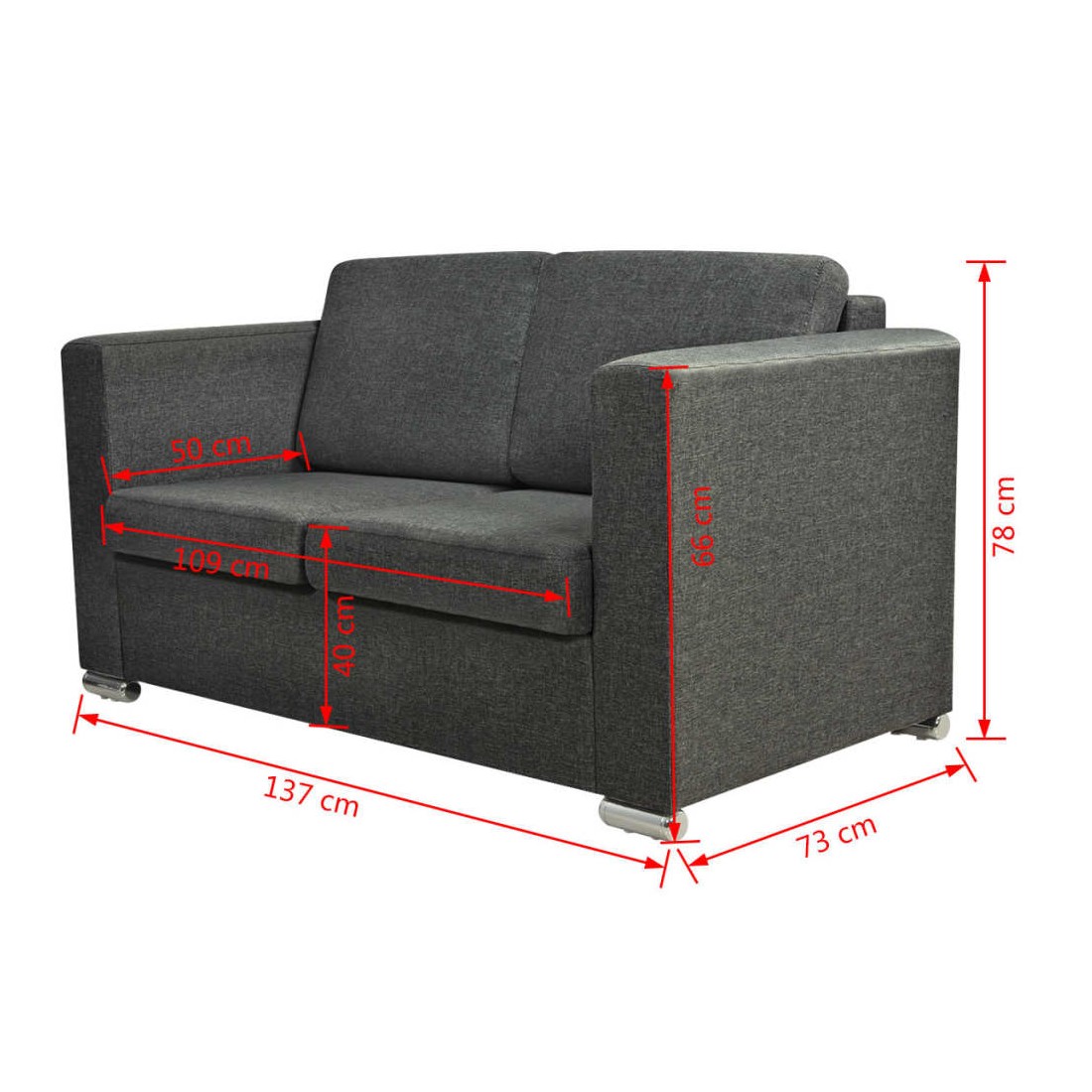Cet élégant canapé 2 places sera un excellent ajout à votre espace de vie. Cadre robuste : le cadre en bois solide contribue à la robustesse de la construction. Expérience d'assise confortable : le canapé dispose d'un large espace d'assise et de coussins épais pour un confort optimal. Il est recouvert d'un tissu doux et résistant. Housse amovible et lavable : les housses de coussin sont faciles à nettoyer car elles sont amovibles et peuvent être lavées à la machine. Excellent choix : que vous ayez besoin d'un canapé confortable pour votre bureau ou que vous souhaitiez simplement ajouter un élément élégant à votre décoration intérieure, ce canapé en tissu sera un excellent choix ! Maximum 110 kg par siège. Soyez conscient du risque de feux ouverts et d'autres sources de forte chaleur à