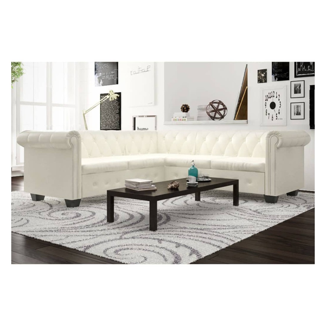 Canapé d'angle Chesterfield 5 plc Cuir artificiel Blanc