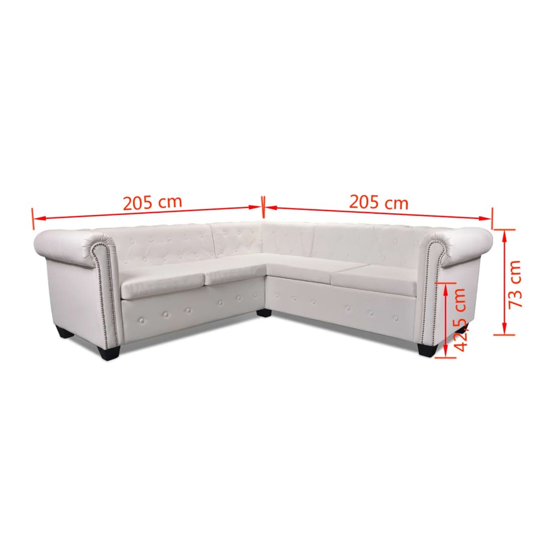 Ce canapé d'angle Chesterfield est la combinaison parfaite de confort et d'élégance et sera un excellent ajout à tout décor de maison ou de bureau. Ce canapé à 5 places, avec ses détails à touffes et à clous et ses accoudoirs courbés, va ajouter une touche de luxe, de classe et de style à tout décor intérieur. Son siège rembourré épais est extra confortable, la structure élégant est durable et stable. Le cuir artificiel de haute qualité est facile à nettoyer et résistant. L'assemblage est très facile.