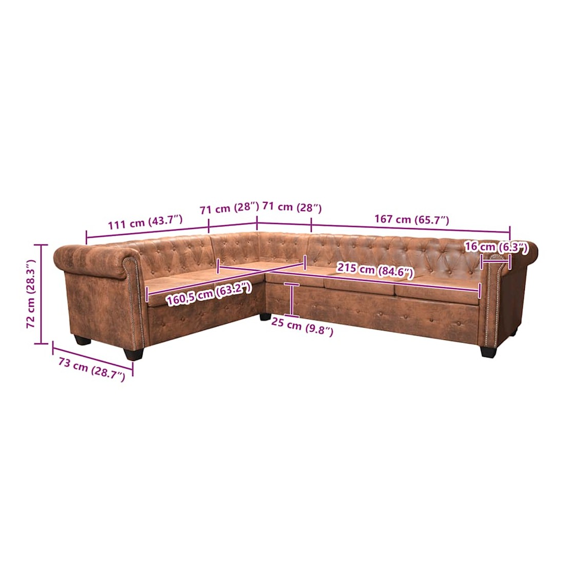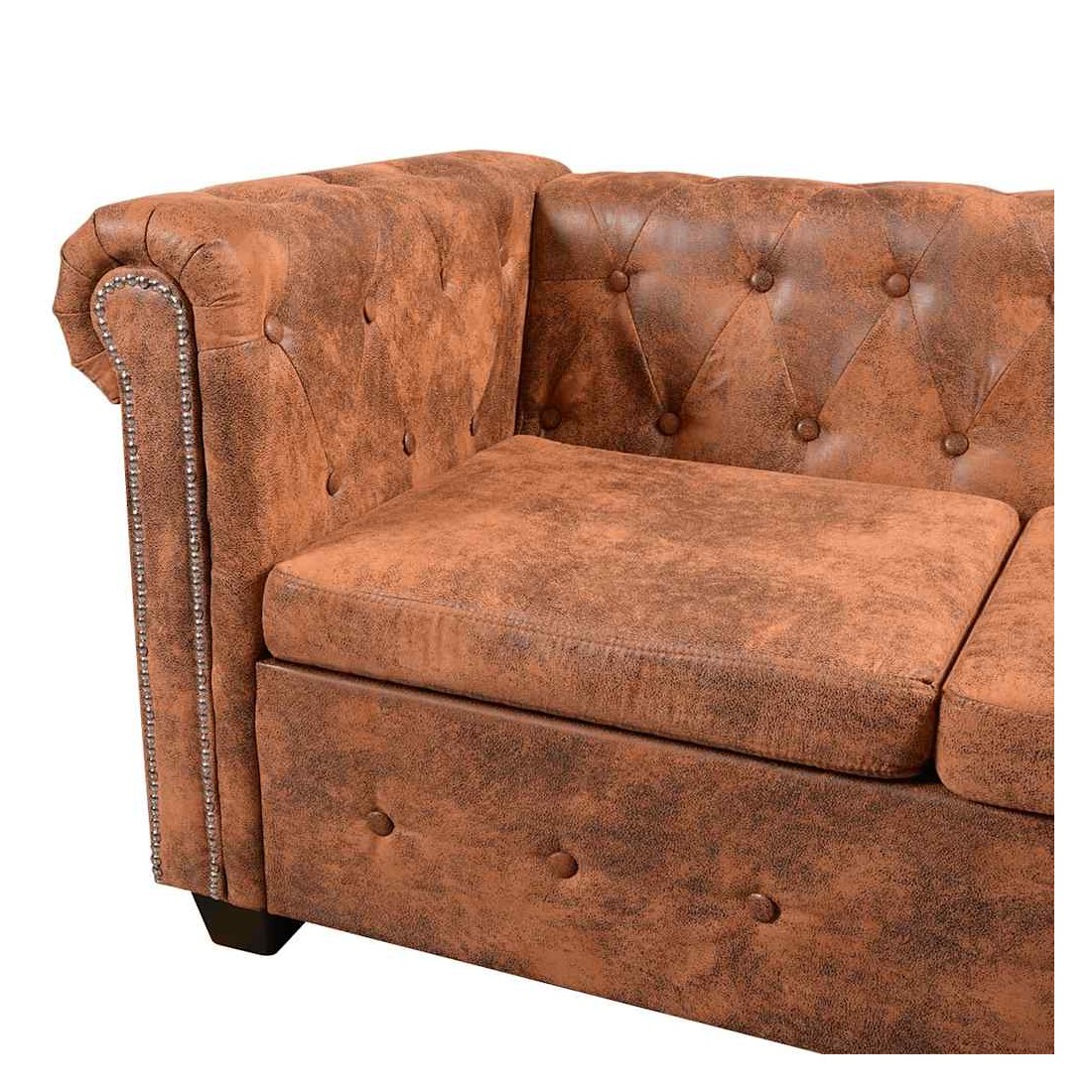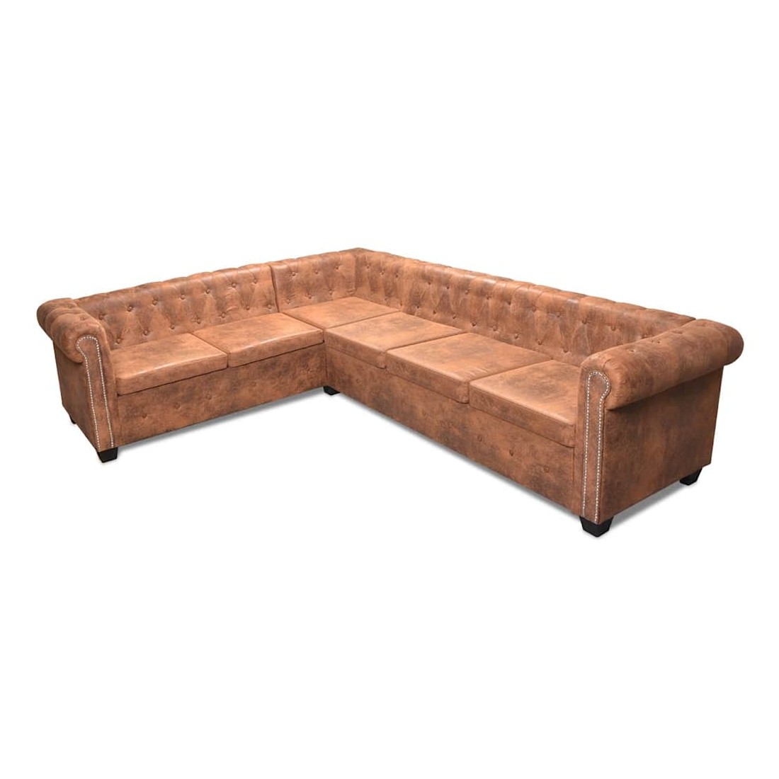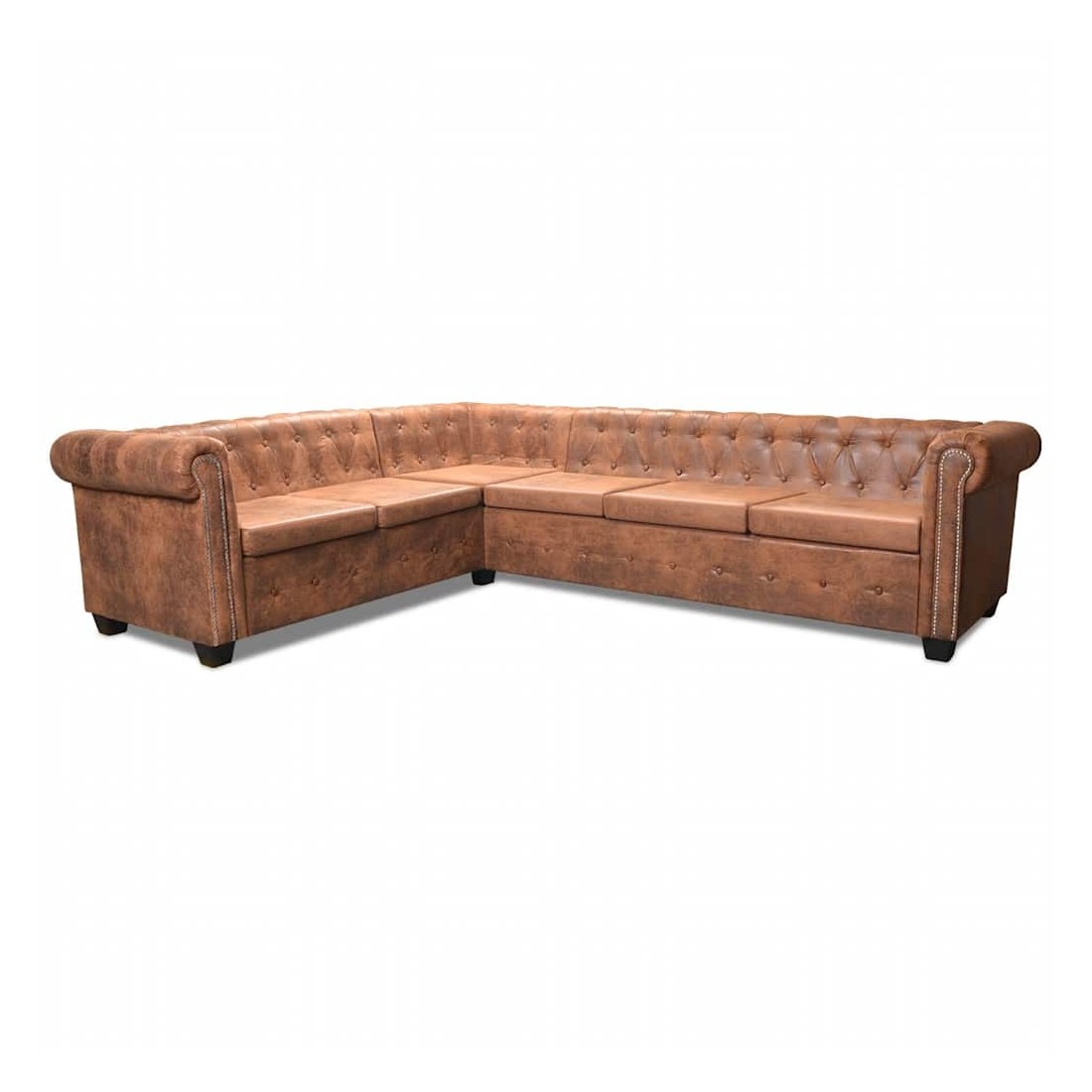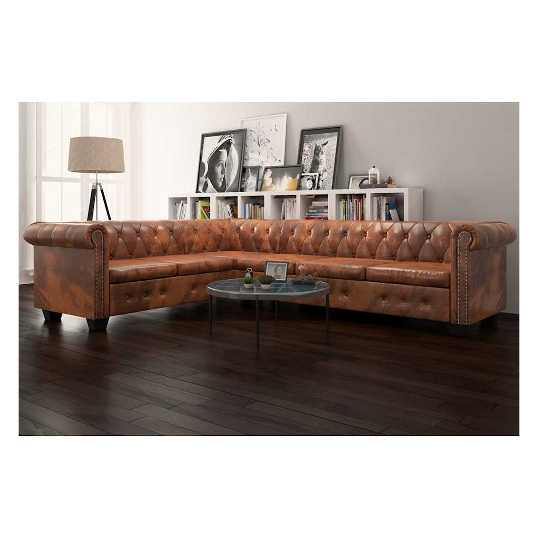 Canapé d'angle Chesterfield 6 Places Cuir artificiel Marron