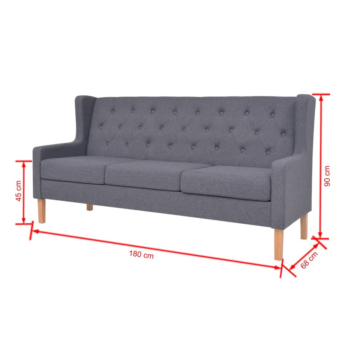 Ce canapé à 3 places extrêmement confortable présente un design discret et sera idéal pour discuter, lire, regarder la télévision ou juste pour vous détendre. Matériau doux et durable : le tissu en polyester offre une combinaison de douceur, de respirabilité et de durabilité, vous garantissant un confort et une convivialité ultimes. Expérience d’assise confortable : le canapé est capitonné en tissu polyester doux et rembourré avec de la mousse pour plus de confort. Cadre robuste : avec un cadre en bois massif, le canapé est stable et durable. Maximum 110 kg par siège. Soyez conscient du risque de feux ouverts et d'autres sources de forte chaleur à proximité du produit.