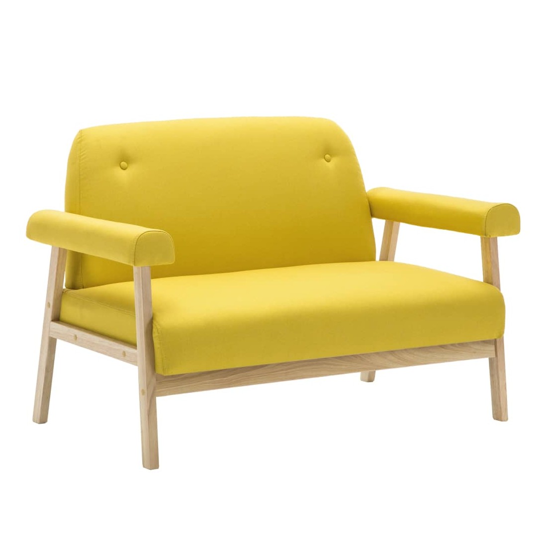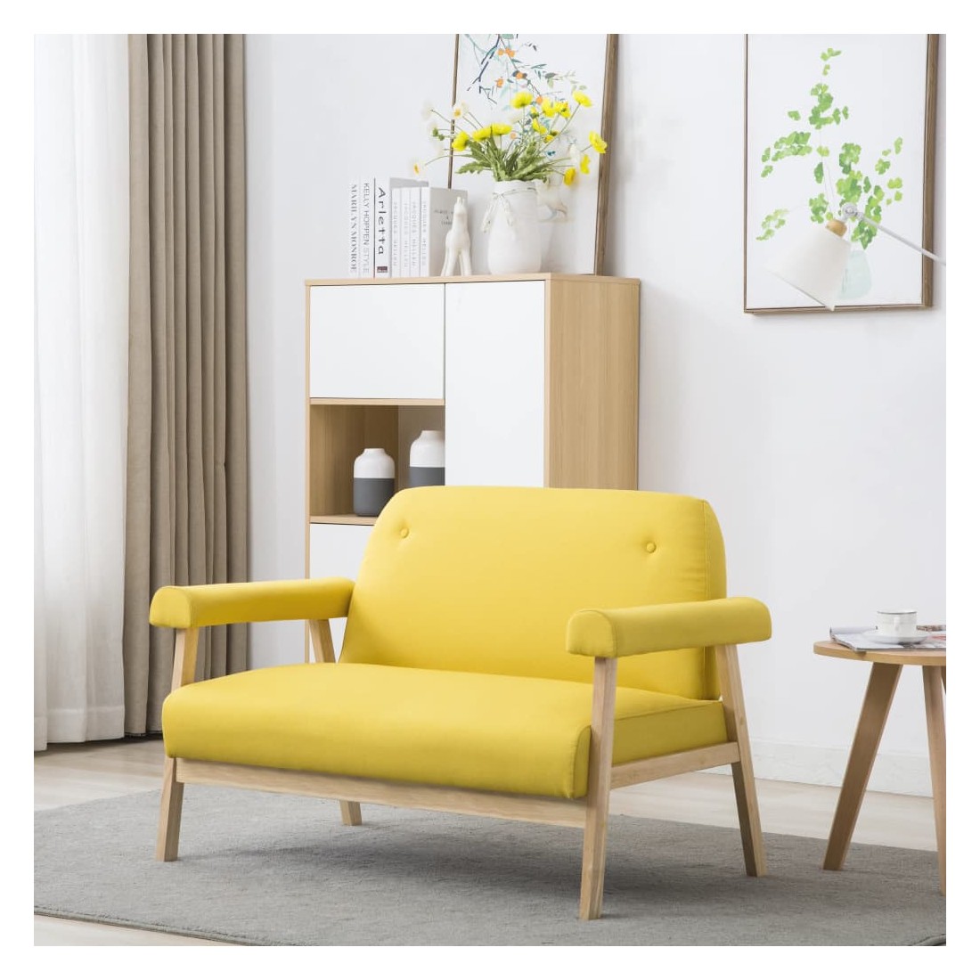 Notre canapé à 2 places au design simple mais élégant sera un complément idéal à votre intérieur. Le canapé est rembourré en tissu polyester doux et capitonné de mousse pour plus de confort. Son cadre en bois massif rend le canapé stable, robuste et durable. Le canapé sera un choix parfait pour bavarder, lire, regarder la télévision ou simplement vous détendre. L'assemblage est facile.