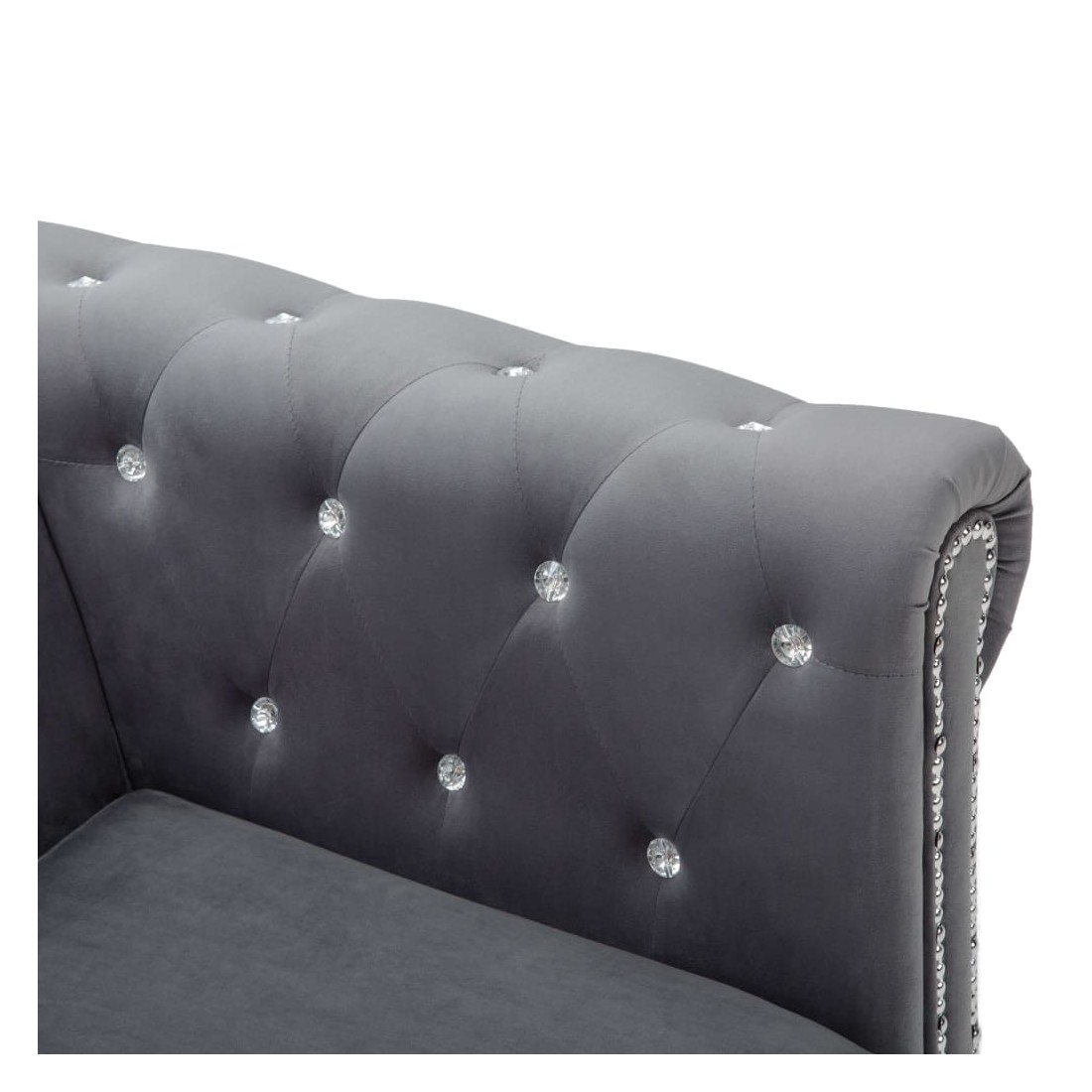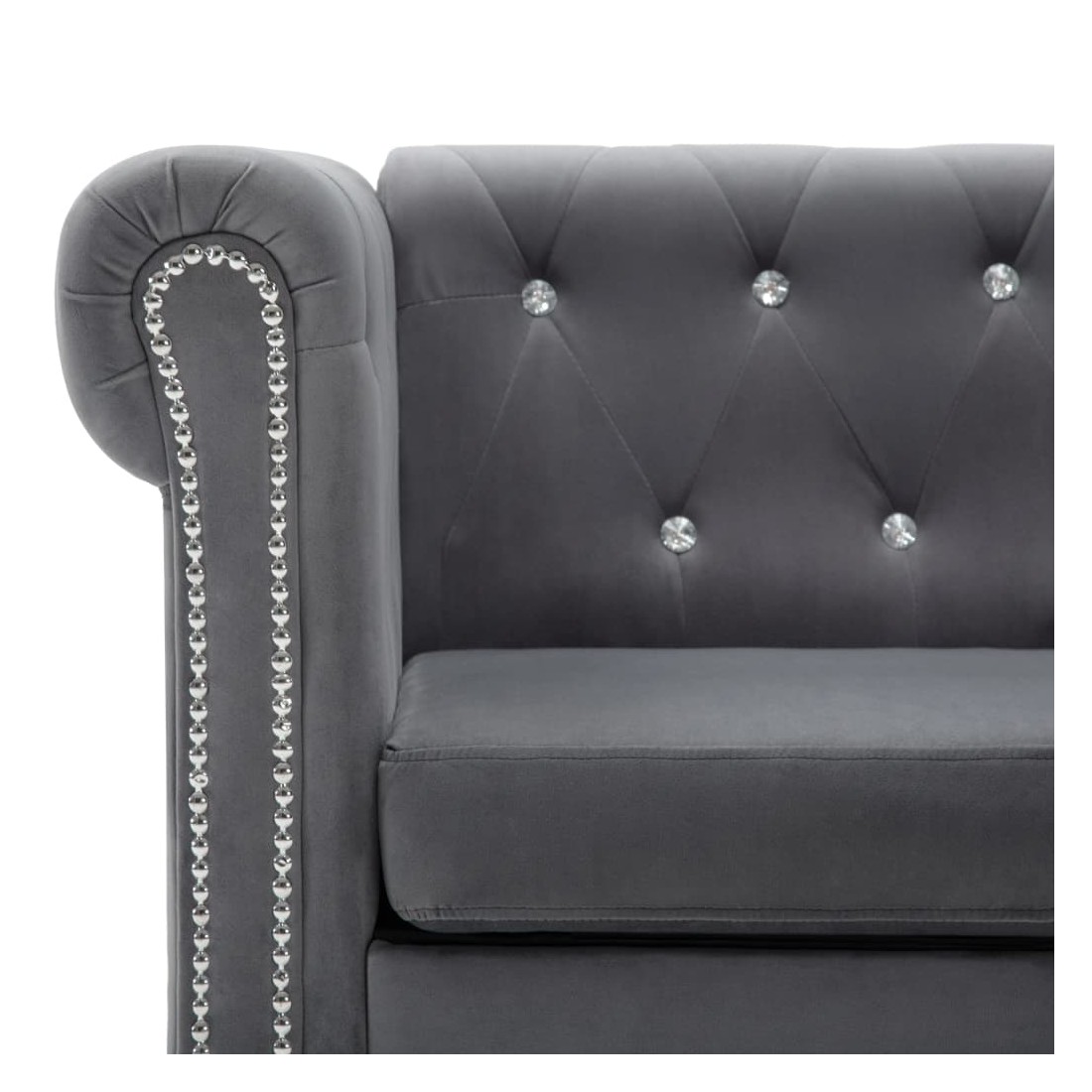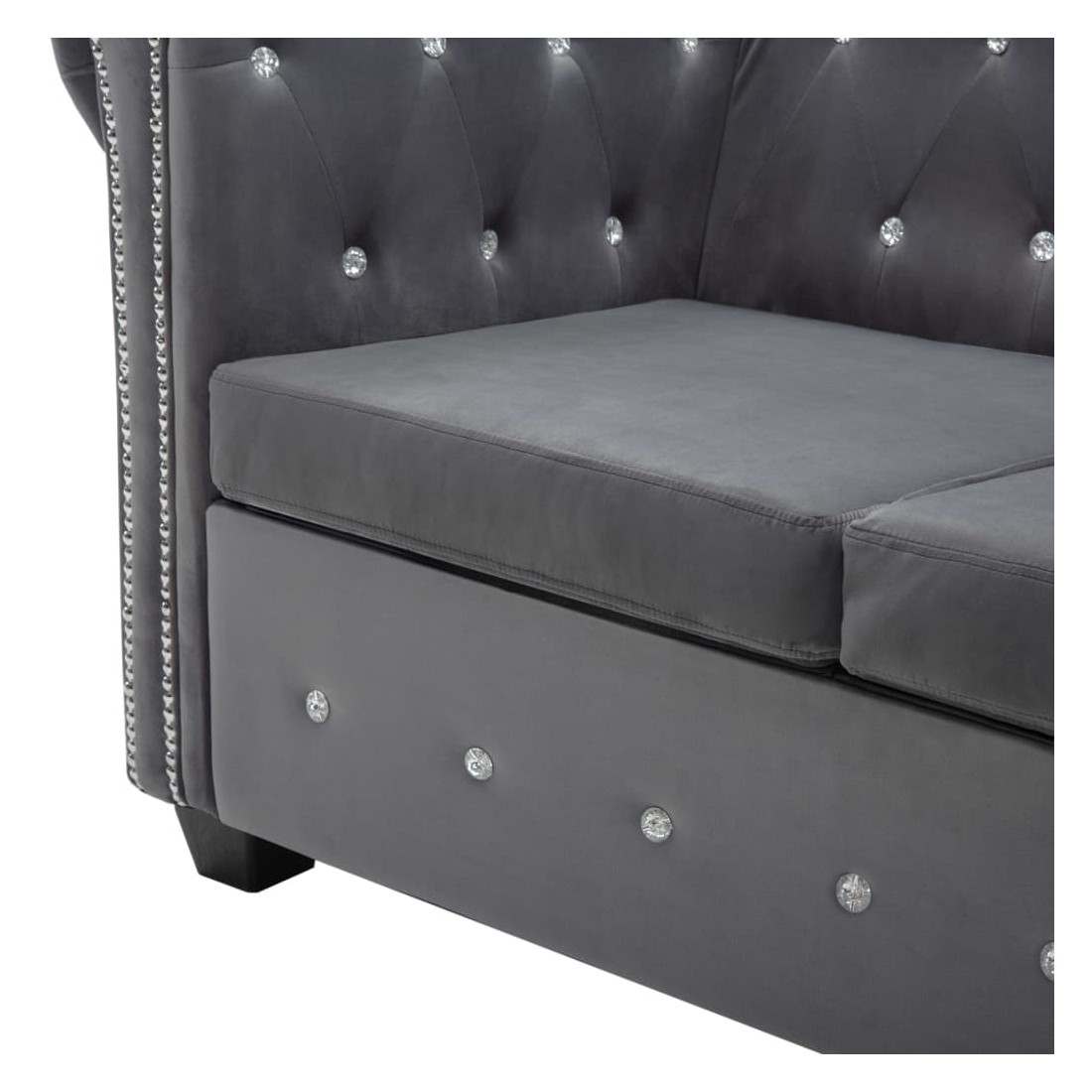 Notre élégant canapé chesterfield, incrusté de boutons en cristal scintillant, ajoutera une touche de luxe, de classe et de style raffiné à toute décoration de salon, bureau ou chambre à coucher. Le canapé a un cadre en bois résistant qui le rend stable et durable. Recouvert de velours de haute qualité et épaissement rembourré avec de la mousse, le canapé assure un confort d'assise optimal. Le canapé est l'endroit idéal pour regarder un film, lire un livre ou tout simplement vous détendre ! Ce produit doit être assemblé.