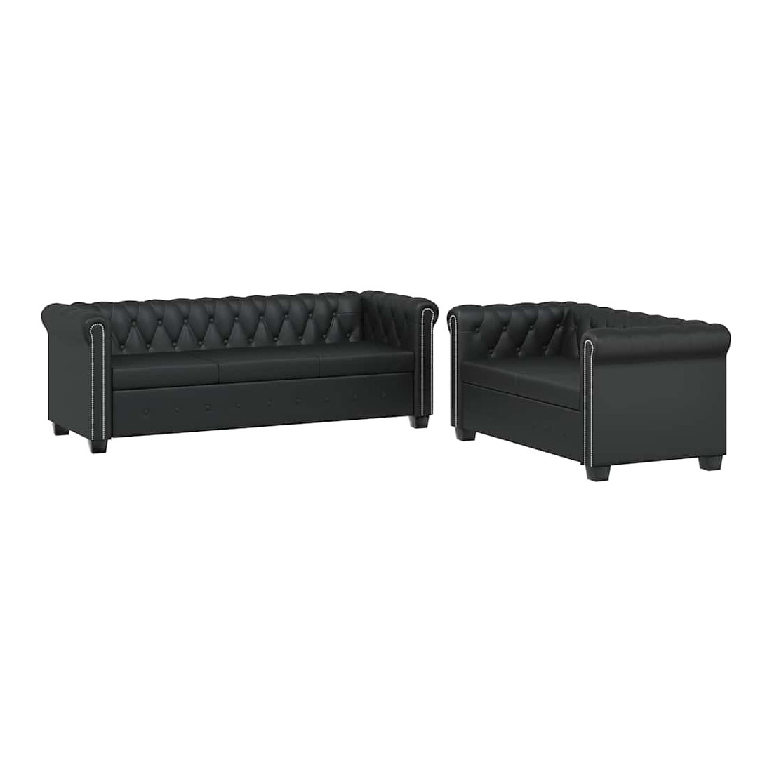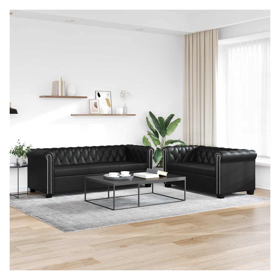 Cet ensemble de canapés à 2 et 3 places Chesterfield est la combinaison parfaite de confort et d'élégance. Il occupe peu d'espace et est adéquat à tout décor de maison ou de bureau. Longue durée de vie et entretien facile : le similicuir est un matériau très durable qui résiste aux taches, ce qui le rend facile à nettoyer avec un chiffon humide. Sa surface lisse lui confère un aspect élégant qui ressemble à celui du cuir véritable.Cadre robuste et stable : le cadre en bois du canapé assure robustesse et stabilité.Expérience d'assise confortable : ce canapé 2 places et 3 places, doté d'une assise rembourrée, offre une expérience d'assise confortable.