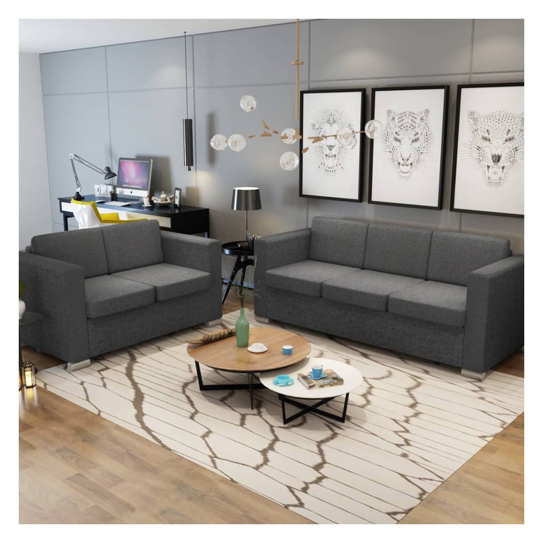 Ensemble de canapés deux pièces Tissu Gris foncé