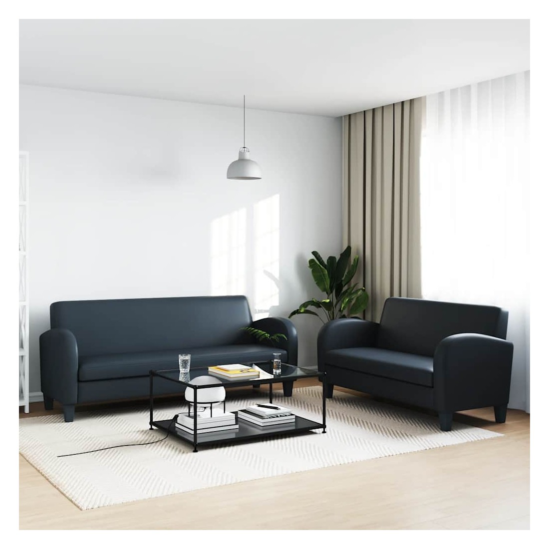 Notre confortable ensemble de canapé en cuir synthétique a un design classique et élégant et sera un excellent supplément à n'importe quel intérieur. L'ensemble de canapé est recouvert de cuir artificiel de haute qualité et est rembourré de mousse extra épaisse pour plus de confort. Le cadre en bois massif rend l'ensemble robuste et durable. L'assemblage est facile. La livraison comprend un canapé à 2 places et un canapé à 3 places.