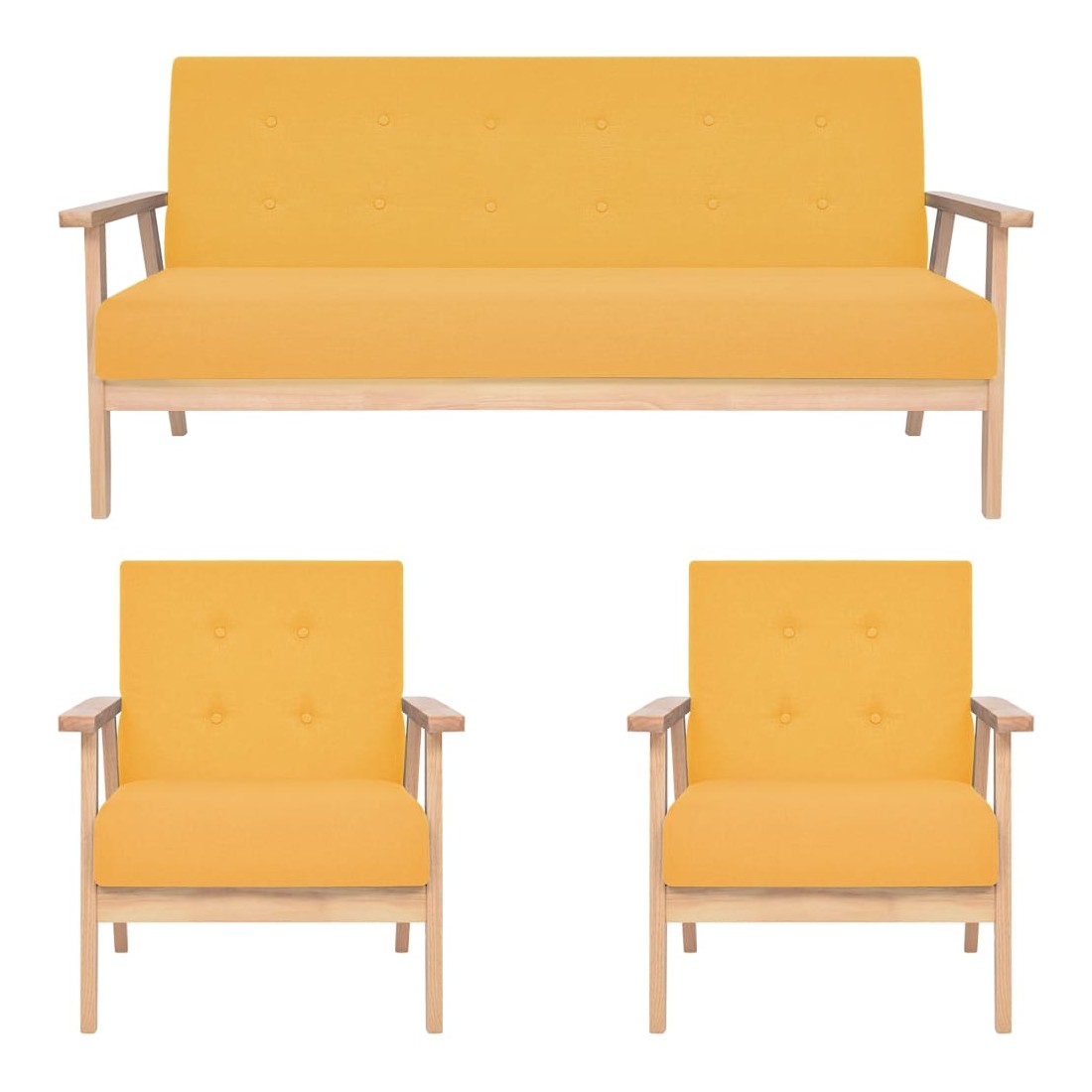 Cet ensemble de canapé très confortable, au design sobre, sera idéal pour lire, regarder la télévision ou simplement vous détendre. Le fauteuil et le canapé à 3 places sont tapissés d'un tissu polyester doux et rembourrés de mousse pour plus de confort. Avec un cadre en bois massif, le fauteuil est stable et durable. L'assemblage est vraiment facile. La livraison comprend 2 fauteuils et un canapé.